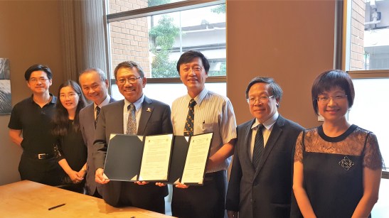 圖03:香港中文大學段崇智校長、霍泰輝副校長黃咏處長與臺大郭代校長、張副校長、張國際長續約合影