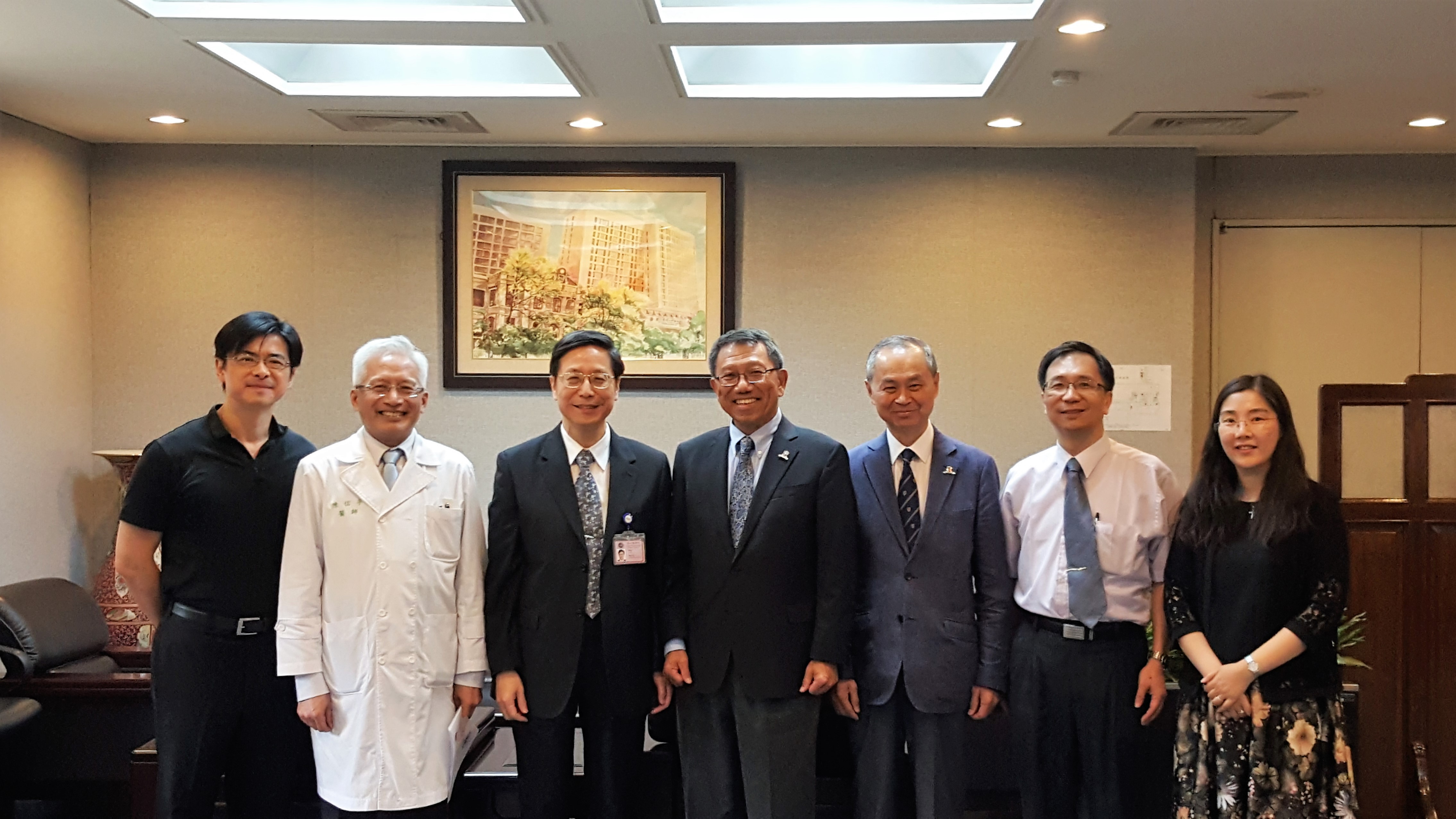 圖04:香港中文大學段崇智校長、霍泰輝副校長黃咏處長訪問臺大醫學院與醫學院張上淳院長、倪衍玄副院長、陳信孚所長、林頌然教授合影