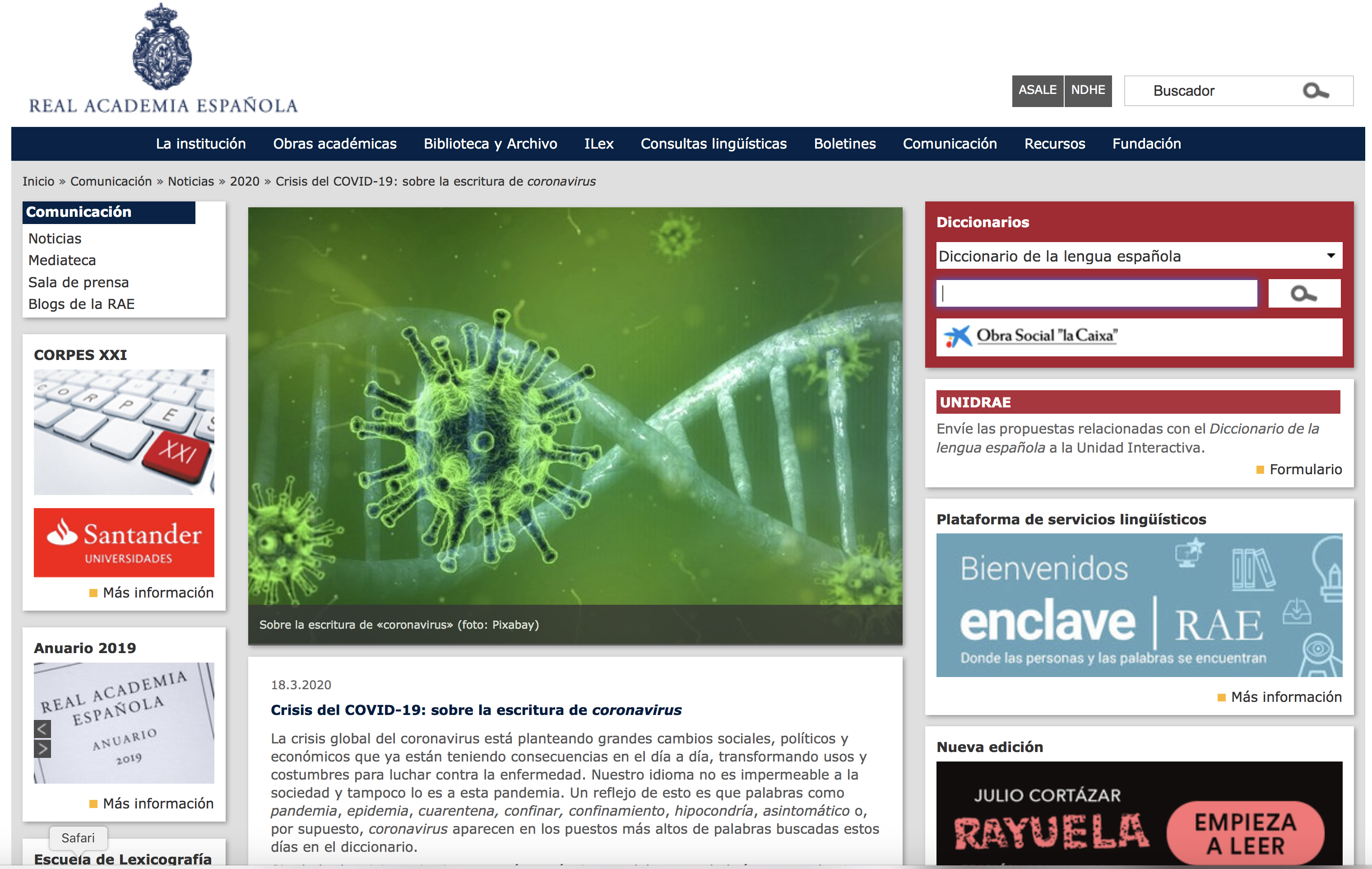 皇家學院針對 coronavirus /COVID-19 釋義說明