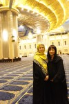 走吧,走吧,散散步,走走路。午餐吃完是五點一刻,晚餐就是西班牙時間囉(西班牙人夏天 10:00 pm 開飯,冬天約 8:30~9:00)。這空檔,原來就已安排好:再訪清真寺。帶領教師同仁來科威特,學術首要,文化參訪必要,傳統市集體驗。因此,繞過傳統市集看熱鬧,務必一賭科威特肅穆的大清真寺始完備。再一次,華玲和我換上黑紗,我們又來到莊嚴宏偉的大清真寺; 再一次,聆聽著導覽說著大清真寺的建築與建材; 再一次,感受伊斯蘭教的堅持與堅貞,禱告室的尊貴與特殊,來自世界各地的大理石、水晶吊燈,空曠廣袤的讀經與禱告空間,就為了阿拉的盛事,成就虔誠信仰的初衷。