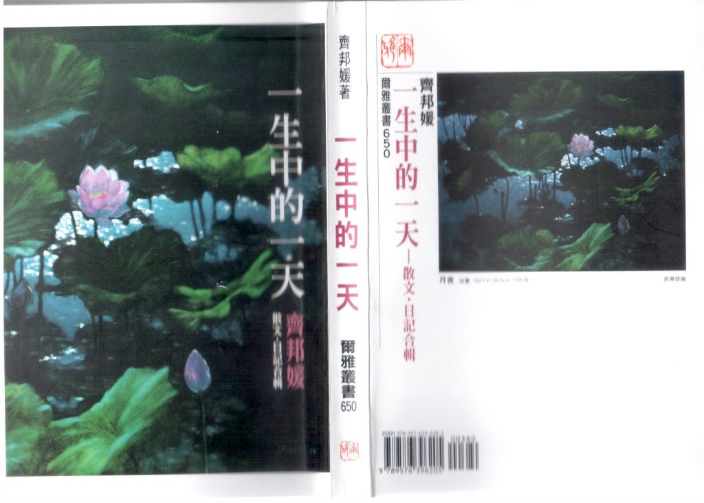 2017 年 8 月 10 日這一天(星期四),我從北二高開車到學校,從永福橋下來,穿過思源路水源會館,再轉到汀州路彎小巷,經過陳三鼎青蛙撞奶後,紅燈亮了。我心裡正想著齊教授這本新版的《一生中的一天》(散文.日記合輯),幻想的念頭一字一字掃過腦海:「我會不會收到齊教授的贈書呢?」綠燈亮了,穿過羅斯福路轉進校園。趕著去開 10:30 的會議,12 點多開完回到國際處,同仁遞給我紙條,同時口頭跟我說「有位齊老師打電話找妳,她說妳知道她是誰。」啊!心電感應嗎?我正要拿起話筒回撥電話給齊教授時,同仁又進來說:「國際長,三線電話……」。齊教授總是比我快一步啊!