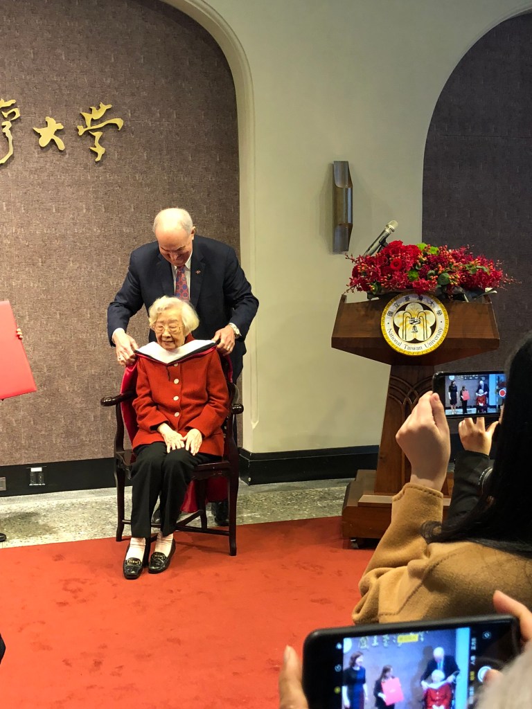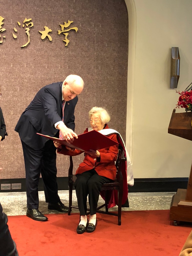 2019 年 2 月 11 日那通和齊教授再次心電感應的電話,就為了等待 2 月 25 日這一天。這一天,開學第二周的週一,在臺大第一會議室舉辦印第安納大學校長頒授榮譽博士學位給齊邦媛教授。我 23 日才從西班牙返國,前一天,單德興老師跟我詢問相關事宜,我告知最好早點去會場,11:00 的活動,10:30 前抵達。