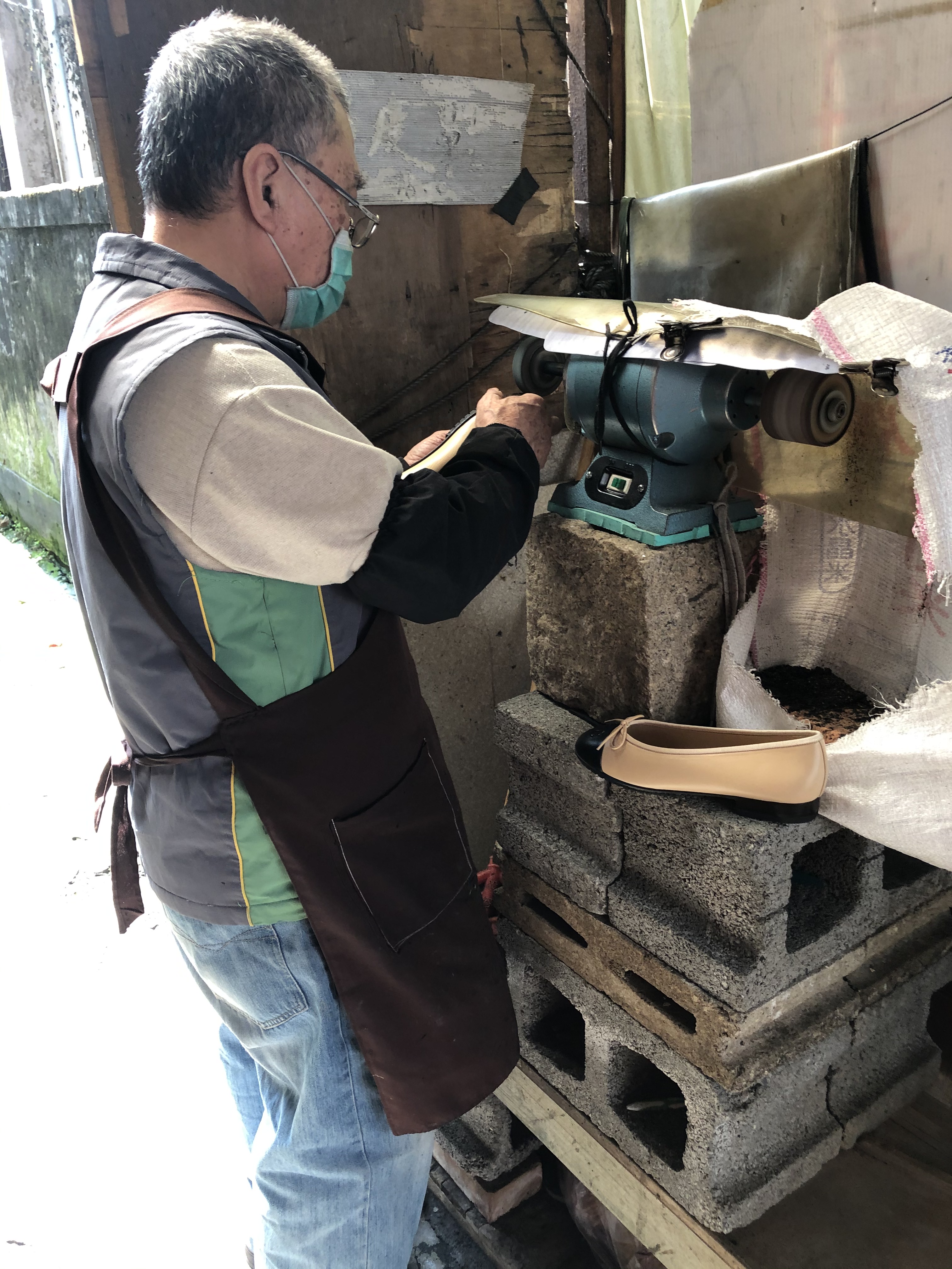 「我以前是學設計的。我在台灣鞋業的全盛時期在鞋廠待很久。對鞋子的特性暸若指掌。我後來去大陸做了幾年,退休後回台灣來」。