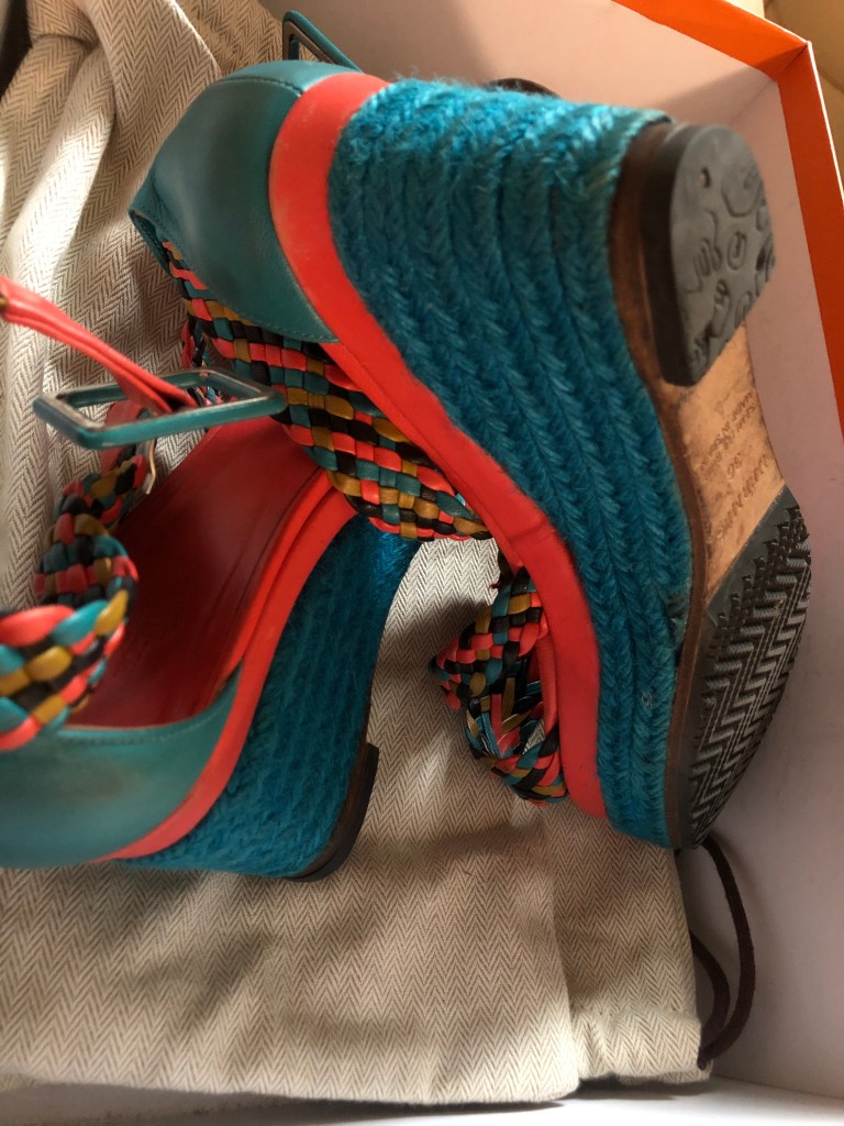 開始想要好好正視自己的鞋子,思考舒適度與保值,是從小嬸送我一雙藍色編織涼鞋開始,這雙鞋子是 Made in Spain。看到西班牙的字樣就讓人歇斯底亞呀!(Crazy for her),西班牙跟義大利的確是歐洲製鞋技術的鞋王與鞋倉! 小嬸在買鞋時就先送修鞋店加強鞏固了,鞋底多了一層橡膠底板,無損美觀,而且走路更穩,時而還有點像坐在舒適車子的沙發椅,上下很舒服地緩緩晃動那種感覺。萬一不小心踩到不平衡的石子路面,頗像輪胎的凹凸痕也能增加摩擦力穩住腳步(想來有點像溜冰鞋的煞車機制),腳也比較不會拐到傷了腳踝。