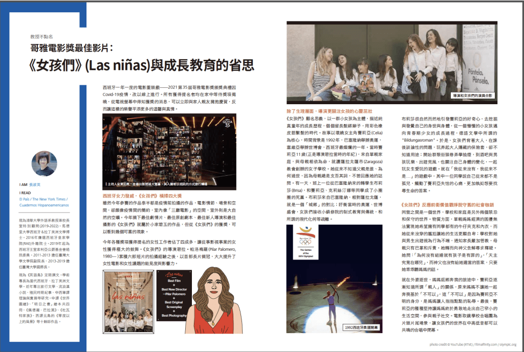 哥雅電影獎最佳影片:《女孩們》(Las niñas)與成長教育的省思,《英語島》,2021 年 5 月,頁 40-42。