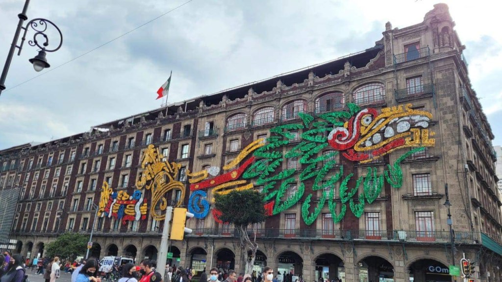 接續是 8 月13 日正式開幕的「500 年印地安原住民的抵抗」活動,首都墨西哥市的歷史古蹟區(憲法廣場、國家宮(總統府與官邸)、藝術宮、人類學博物館、大都會大教堂、獨立紀念柱、拉丁美洲塔等等),用綠、紅、黃,白、藍顏色裝飾的「克察爾科瓦特羽蛇神」(Quetzalcóatl)高掛國家宮門面,並且複製1978 年發現的古蹟 —獨石碑科幽騷奇女神(Coyolxauhqui)[1],以「尚未癒合的傷痕」詔告全民,在在呼喚人民莫忘阿茲特克帝國的建國基地與原鄉「特諾奇蘭」(Tenochtitlan)淪陷的教訓:1520 年 6 月 30 日阿茲特克族群中了反間計,將蒙特蘇馬二世以亂石打死,以及 1521 年 8 月 13 日被西班牙征服者艾爾南・科爾特斯(Hernán Cortés)殲滅的恥辱與傷痛。