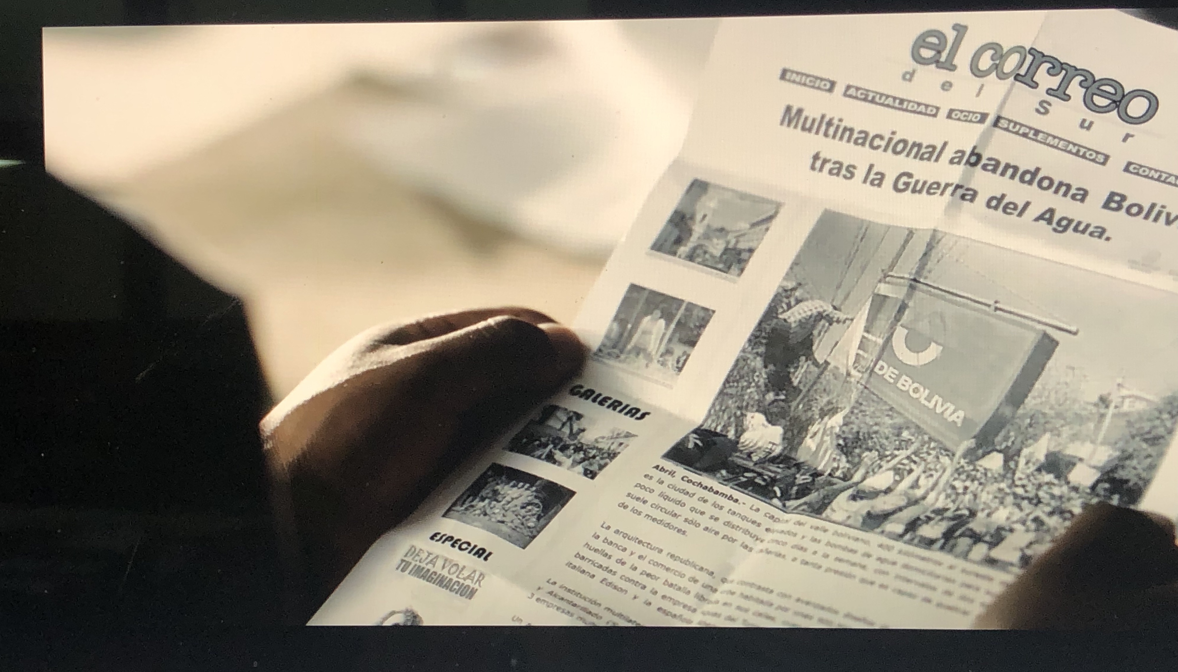 《雨,也是》如此鋪陳的楔子,其實是為了 2000 年 1-4 月發生在科恰班巴的「水資源戰爭」佈局。「水資源戰爭」的引爆點在於世界銀行對波利維亞紓困的附帶條件,必須將水資源私有化。因此,美國最大的建築工程公司貝泰(Bechtel)和玻國總統烏戈・班塞爾(Hugo Banzer)政府簽約,殊不知貝泰背後所依賴的靠山是科恰班巴西邊的杜納利國家公園水源區。「杜納利水公司」(Aguas de Tunari)一年可以供應 4 億 9 千萬立方米的水給科恰班巴和其他城市,但是卻被貪腐的政府、財團和跨國投機商分杯羹而剝奪殆盡。民生用水費用從 50% 漲到 300%,致使許多家庭無法支撐孩童上學,因缺水而造成的骨牌災難接踵而至,迫使科恰班巴的居民走上街頭; 無法無天的政策讓「公民不服從」,加上許多居民為原住民,更讓人民感到遭受歧視和壓迫,一句「我們什麼都被剝奪,連雨也是,根本無法集水…」,因此,唯有訴諸暴力反抗,形成社會和國際輿論壓力方有解套希望。