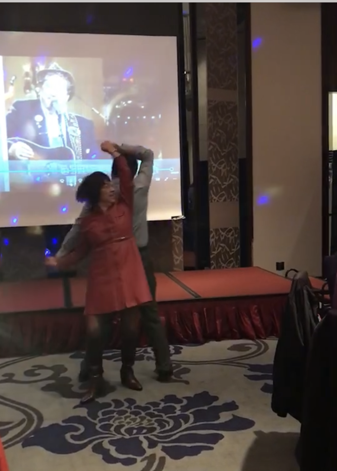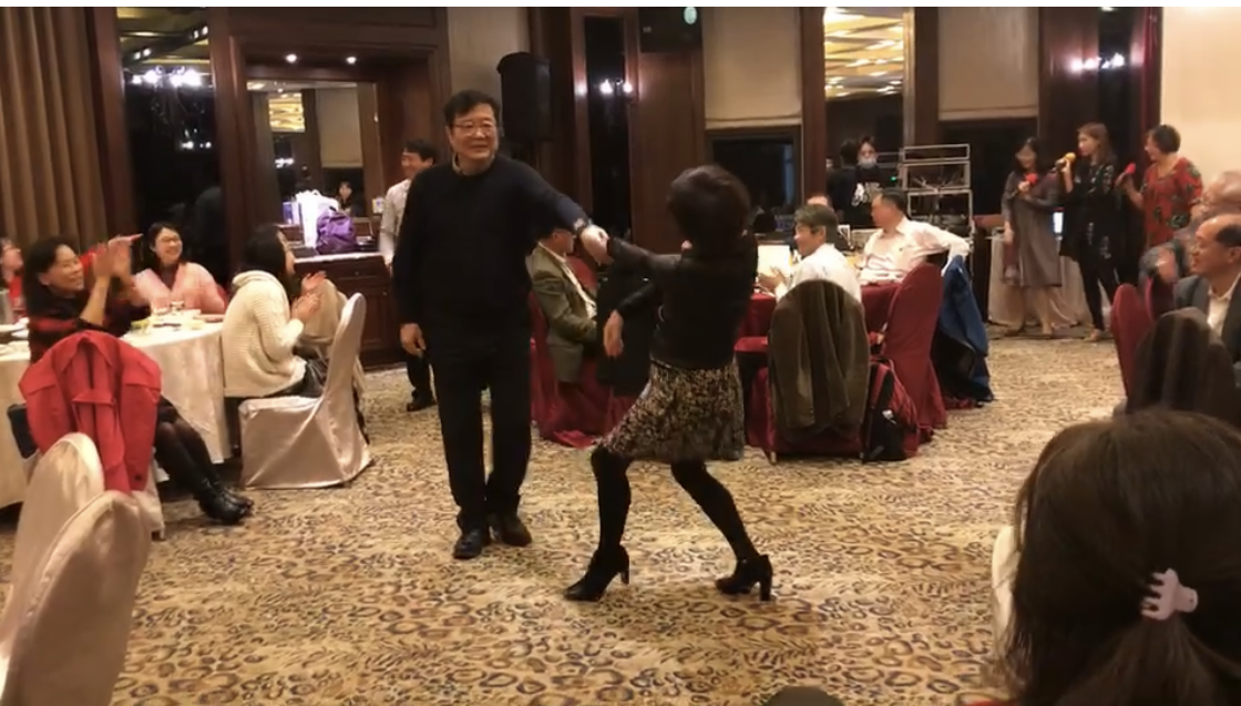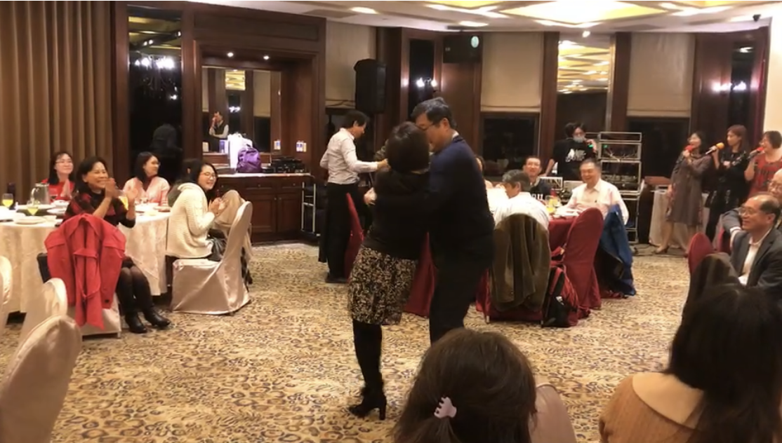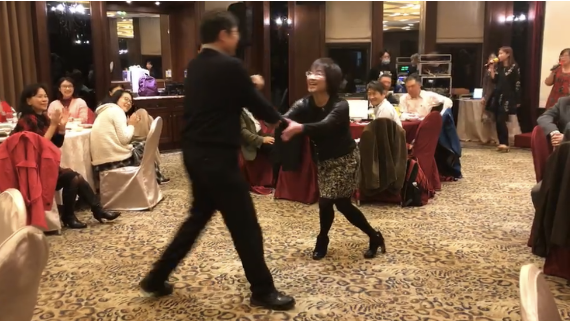 在清華(一個許多人形容溫良恭儉讓的學術涵養與氣質的大學),有了這樣的機緣,真是喚回 40 年前的青春歲月。第一年,我的行程撞期了,無法參加(無三不成禮啊,迄今猶扼腕)。呂副校長(平江)跟我說,他不介意說出相片中「舞」林高手是他。我們略有默契,相約明年覓地「續前緣」 (呵呵呵:不知道換了位置要不要換腦袋喲!)。想到今年 4 月 29 日秘書處為賀陳弘校長線上惜別會時,那可愛吸睛的畫面,就是校長和呂副校長抖著肩膀一路走到現場,「舞姿」比老虎伍茲揮竿還厲害,比這幾張照片的曲線都更迷人。