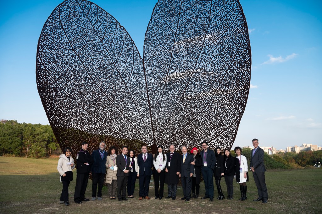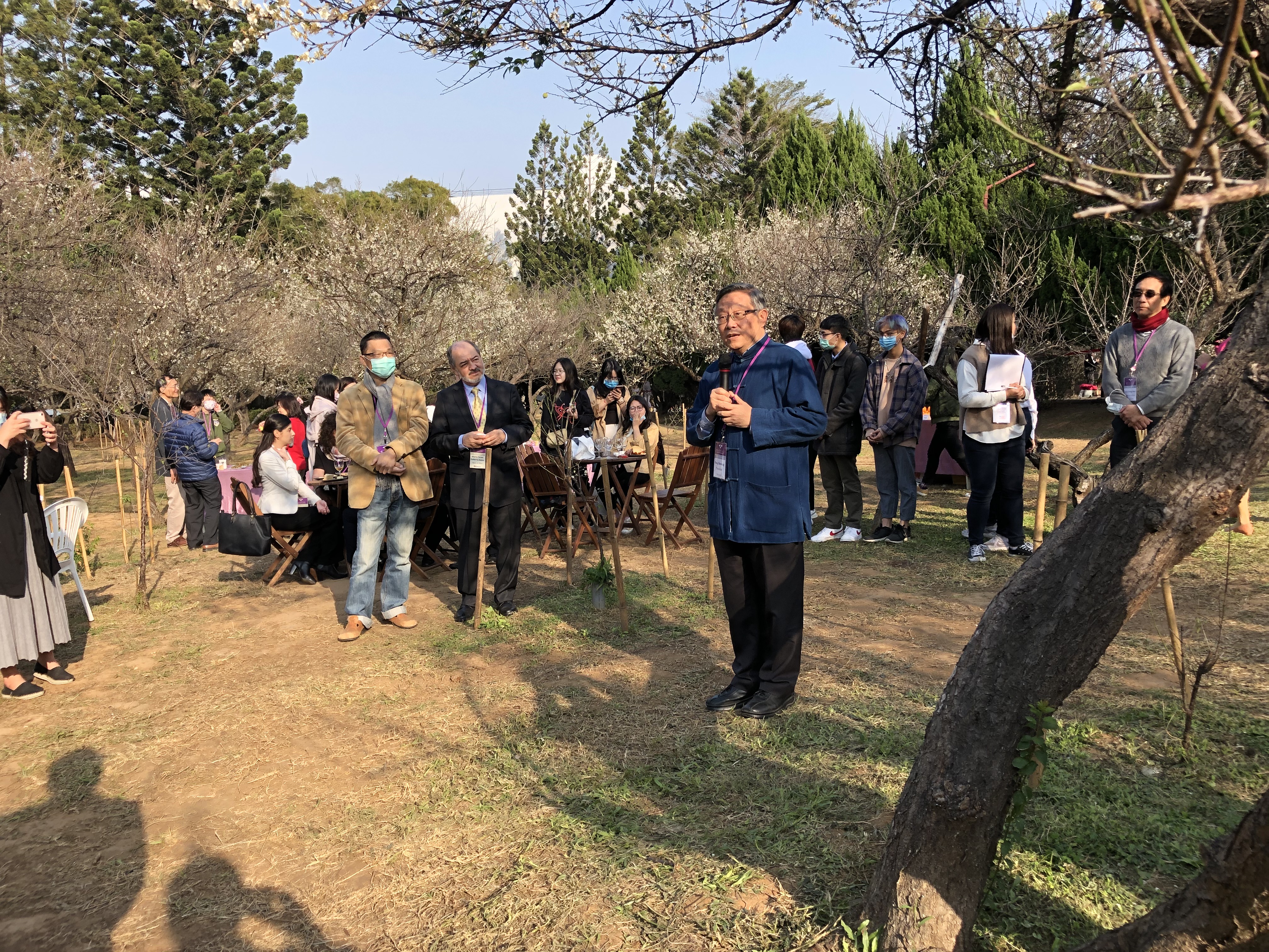 清華得天獨厚,或可說地靈人傑,2021 年在兩次疫情爆發前,一兩百人的大活動中均得以順利舉行,圓滿成功。一次是秘書處主辦的「駐台大使代表梅園會」,單是拉美、西葡語國家來了九國大使和代表。那一陣子全球大爆冷,連市區都積厚雪,台灣也出現罕見的低溫,上午還冷颼颼,而下午兩點開始的「梅園會」當天,卻從中午倏忽出現大太陽了(記憶深刻,因為我從臺大外文系的期末聚餐吃了十分鐘的沙拉後,就出發南下,開車得戴起太陽眼鏡才看得到路),和煦的日照艷陽持續達四小時,讓梅園表演國樂的同學都可穿起短袖旗袍 (我可是穿馬靴呢!),傍晚時分天候才又驟冷吹起冰風,不得不讓人「胡思亂想」,這果真是「天時地利人和」天賜好時辰嗎?