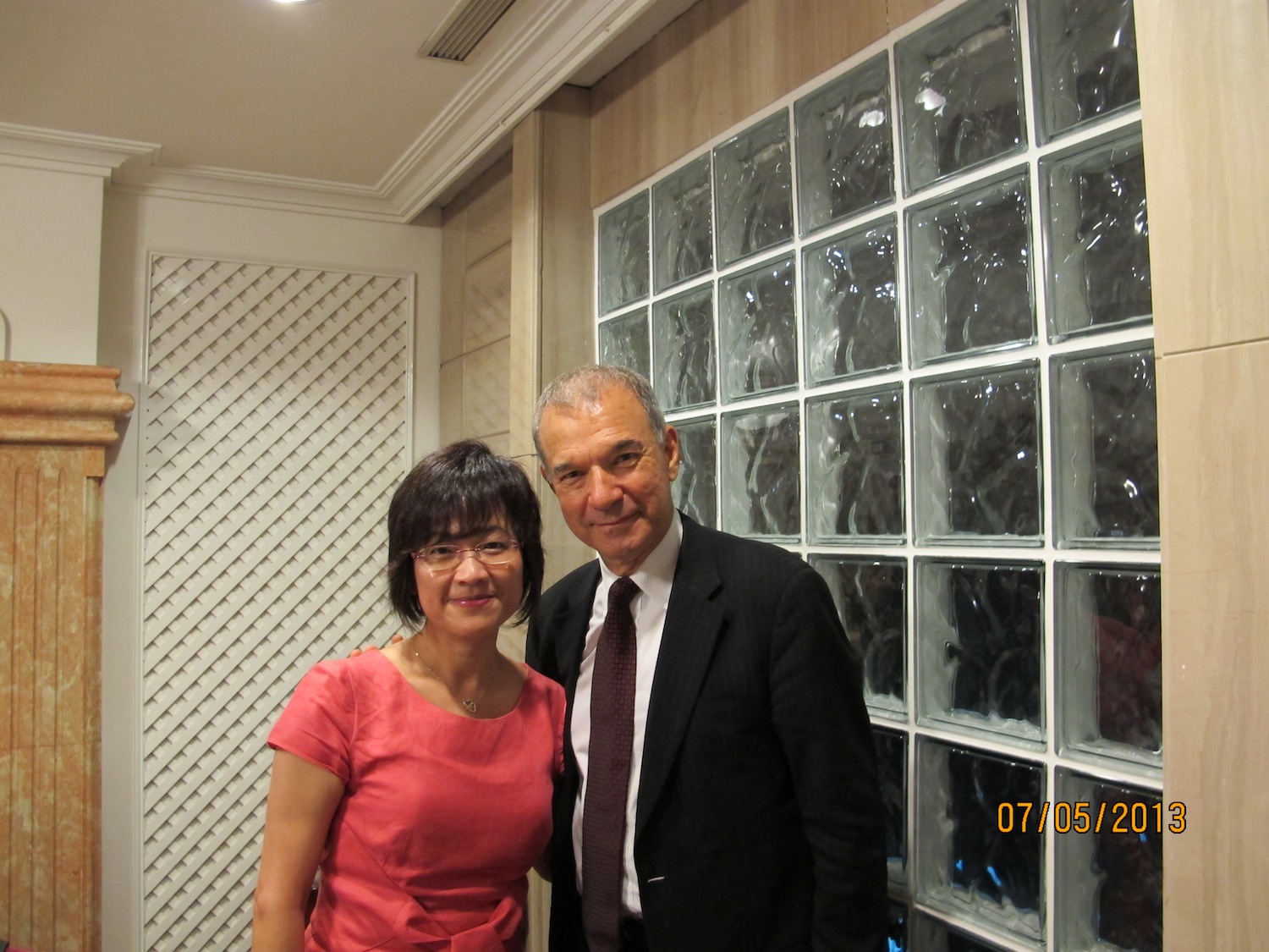 (左:2013.07 我擔任文學院副院長時,因「臺灣莎士比亞學會」成立大會接待哈佛 “John Cogan” 講座教授,也是 2012 年普立茲獎得主 Stephen Greenblatt。) 2015 拜訪哈佛時,他親自接待,請來院長和校內人文領域主管,在哈佛 Faculty Lounge 餐敘 )
