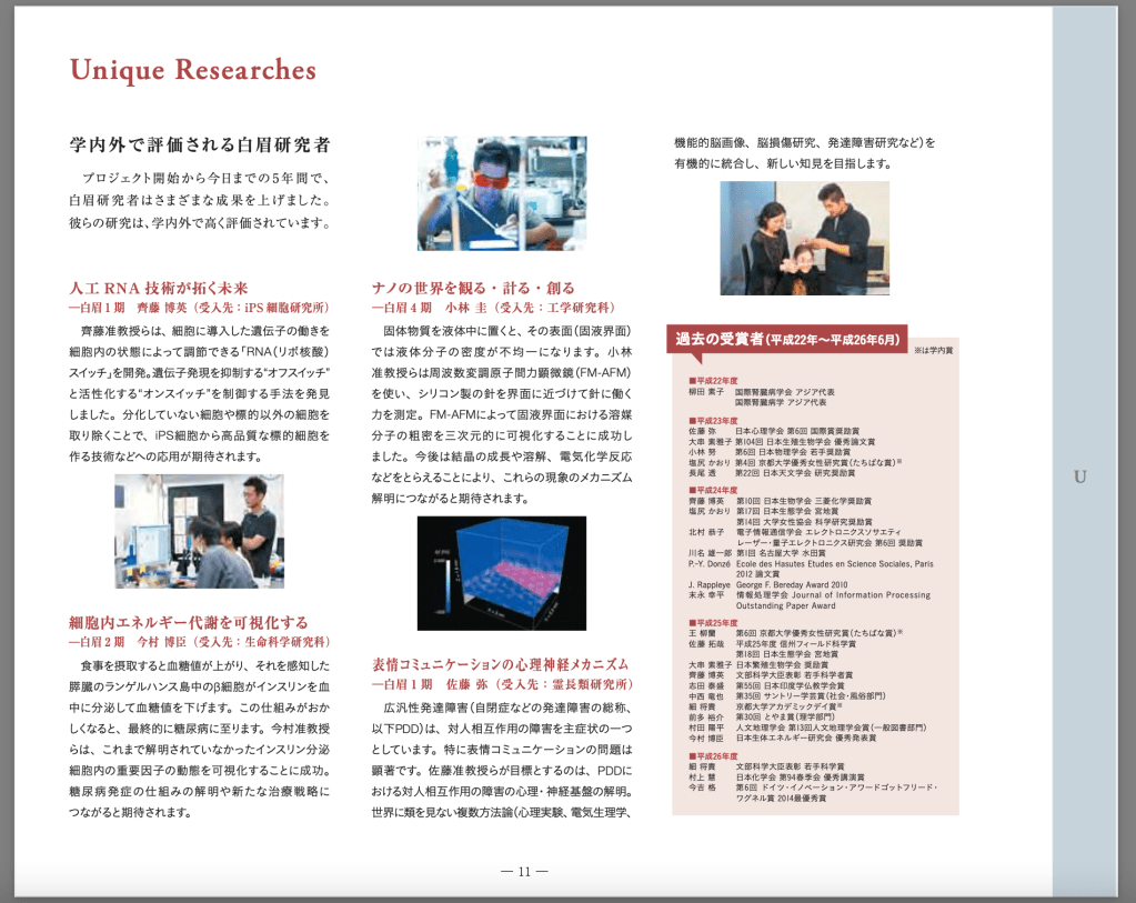 2014 年 6 月 3-4 日,陳副和我以及同仁出訪京都大學,為同年 9 月1-2 日臺大的回訪舉行先期預備會議,京大副校長 Michiaki Mishima 的接待簡報中,再次強調京都大學培育人才的創新計畫 The Hakubi Project。這個計畫,在半年前京大訪問臺大時,當時的學術副校長 Kiyoshi Yoshikawa 也提及這項別出心裁的研究獎助育才計畫。計畫名稱的特殊意涵再次吸引了大家的注意力,我想更引起陳副校長的關注。因為在此之後,他隨時在我耳邊提起,尤其 9 月 1-2 日的臺大回訪,在兩校個別的簡報中,屢屢看到 The Hakubi Project 的介紹,可見是京大引以為榮的創建。陳副希望臺大也有類似的拔擢計畫,除了向京都大學見賢思齊,取其長為鏡,也能彰顯臺大並駕齊驅的人才培育計畫,而其中更細膩的巧思,應該是建立品牌的概念,讓這個獎金計畫不僅僅是一筆研究經費,而是一項高度榮譽,極具影響力的學術品牌。