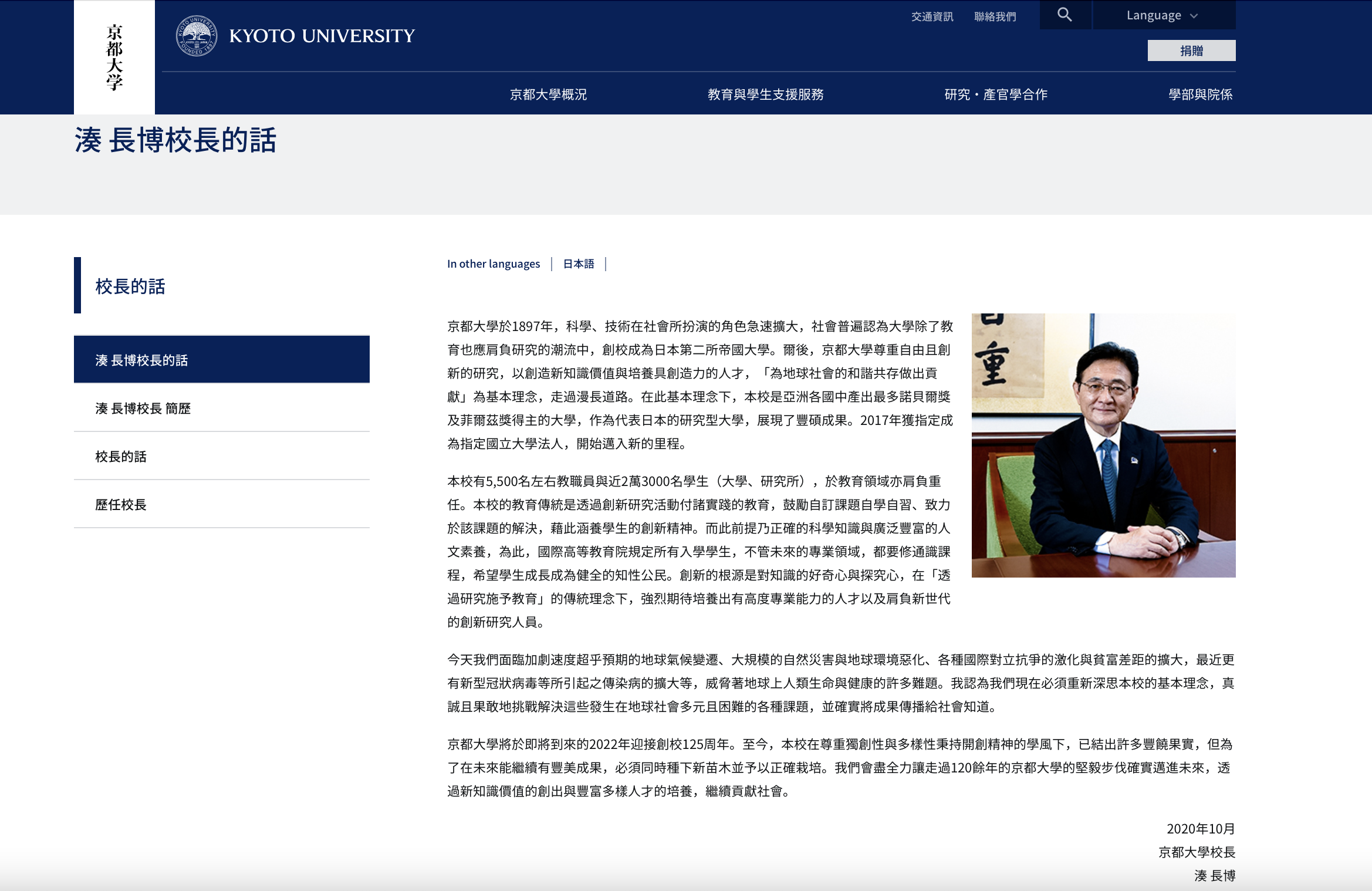 京都大學,身為日本帝國大學制度 (成立於 1897 年)的一員,坐落於歷史悠久的古都,《源氏物語》創作的京城,吸收唐朝文化精髓的都會,在 21 世紀引用華文歷史上的經典,做為最現代舉才的根本,在我們看到明暸的當下,欽羨與佩服。