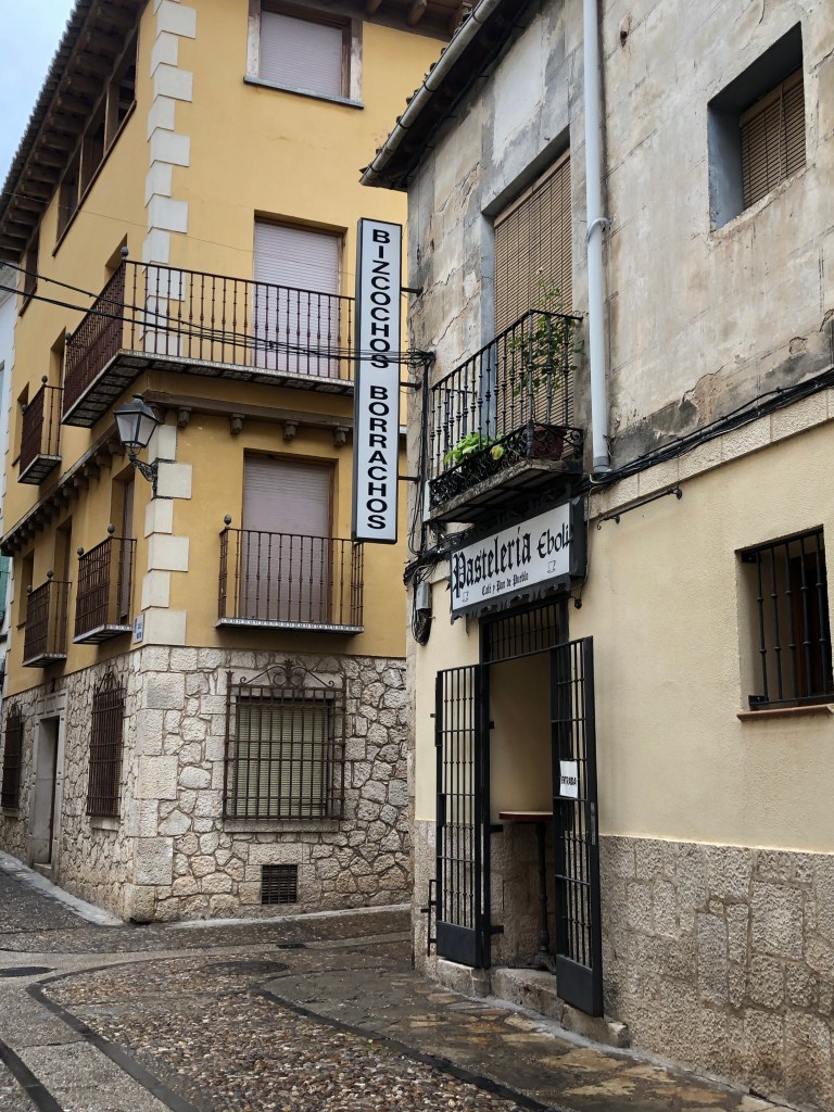 於是,還不到十一點,我們已經來到了瓜達拉哈拉省 (Guadalajara) 的巴斯特拉那鎮 (Pastrana),也是塞拉一九四六年徒步旅遊的《亞卡利亞之旅》最後一站。趁著還有五十分鐘的時間,衝著沒吃早餐的「唧哩咕嚕」的胃當藉口 (還有,不知為何,陰雨的天候自然想多吃甜食),我們一口氣點了好幾種道地的甜食品嚐。