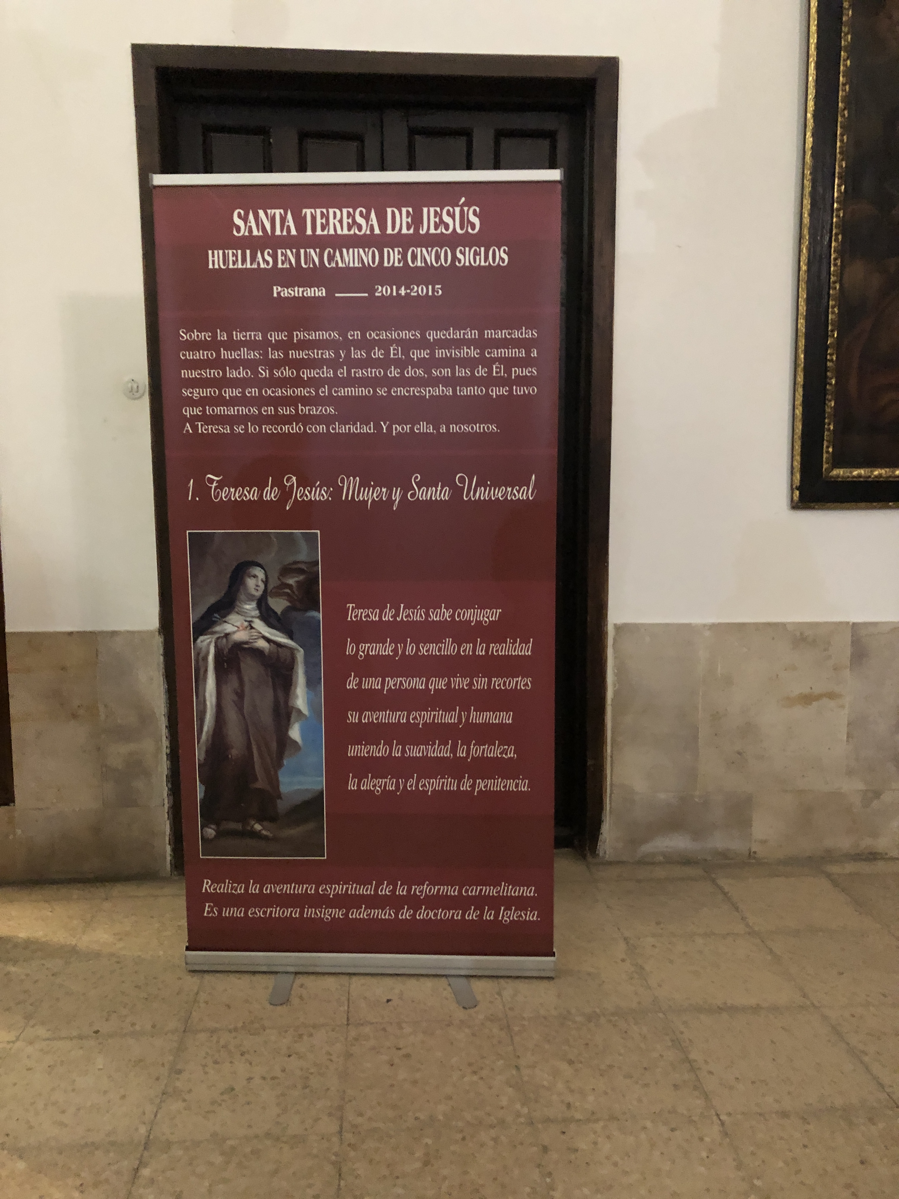 果不其然,導覽員回答那織布機早已無蹤影,且塞拉描述的地方,現在也空無長物。緊接著,她依序引導這團約一、二十人湊成的訪客,一一說古講今。介紹這昔時王宮木製天花板的「雕梁畫棟」時,提到塞拉《亞卡利亞之旅》的描述,特別跟現場的旅人觀光客指了我一下,說「我們這裡有位中譯《亞卡利亞之旅》的譯者」,結果現場就有人指名要我回答,說我一定最清楚。緊接著,後頭就有另一個村鎮的女士貼近我: