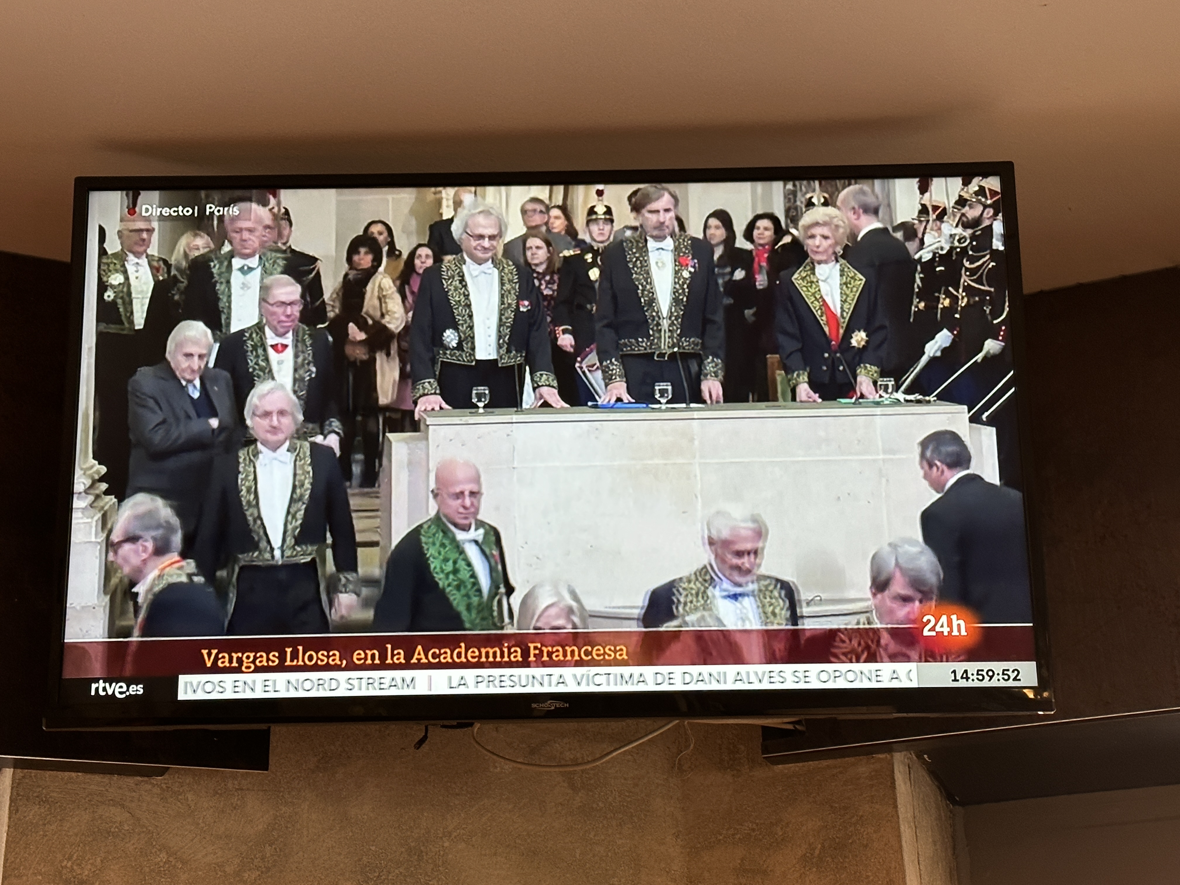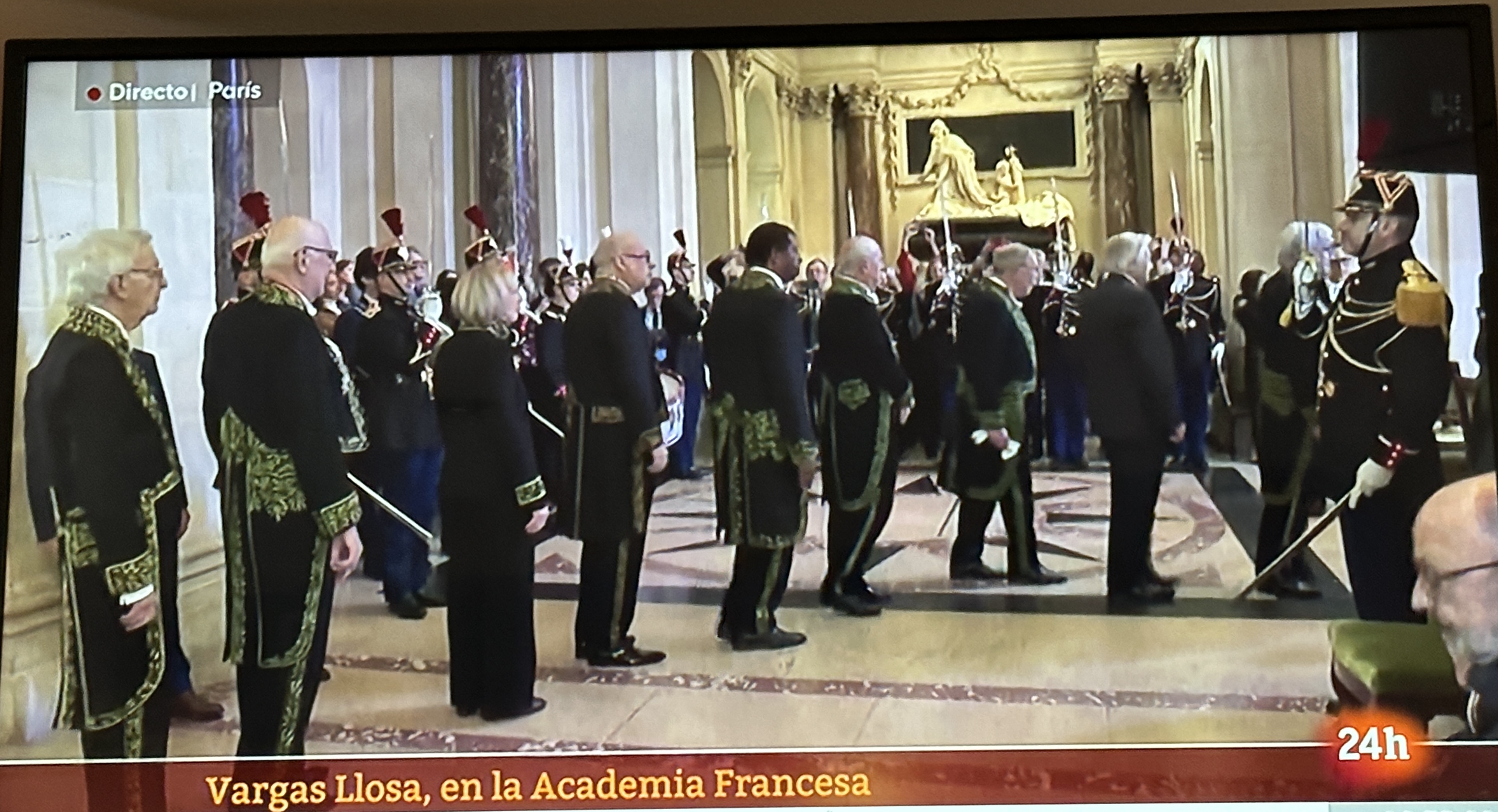 正當這廂新聞沸沸揚揚時,2月9日,法蘭西學術院 (Académie française) 在巴黎隆重舉行尤薩成為法蘭西學術院院士的入會典禮,這項早在一年多前便知道的消息,尤薩成為有史以來第一位西語作家獲選法蘭西學術院的院士,和孟德斯鳩、伏爾泰、雨果、小仲馬等人在歷史上「永垂不朽」。“獻給不朽” (àl’Immortalité) 的稱號是學術院徽章上的名言,為當時創始人樞機主教黎塞留為學術院而作。為了迎接這項「不朽者」的榮譽,已經被企鵝藍燈書屋併購的西班牙「豐泉」(Alfaguara) 出版社,特地將尤薩撰寫與法國文學有關的論述文章結集出版《在巴黎,一個老土》(Un bárbaro en París, 2023),名家大作逐一分析,彰顯尤薩與法國文學的連結與這項榮耀的根源。
