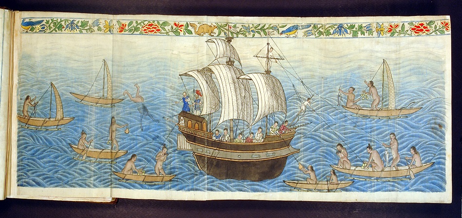 1521 年麥哲倫環球航行一周抵達菲律賓(同年 4 月 27 日和島民衝突,命喪宿霧東岸的麥克坦島),同行 265 人,僅 18 人生還返歐,但也引起西班牙對東南亞的興趣; 1542 年再一次探勘征討中,羅貝斯・維亞羅伯斯( Ruy López de Villalobos) 以當時的王子菲立普(Felipe)之名命名雷伊泰島( Leyte) 和薩瑪島( Sámar)為菲律賓群島(Filipinas),1565 年之後西班牙率兵繼續攻佔菲律賓,1571 年直搗要城,正式佔領了馬尼拉,綿延 333 年的殖民之路。