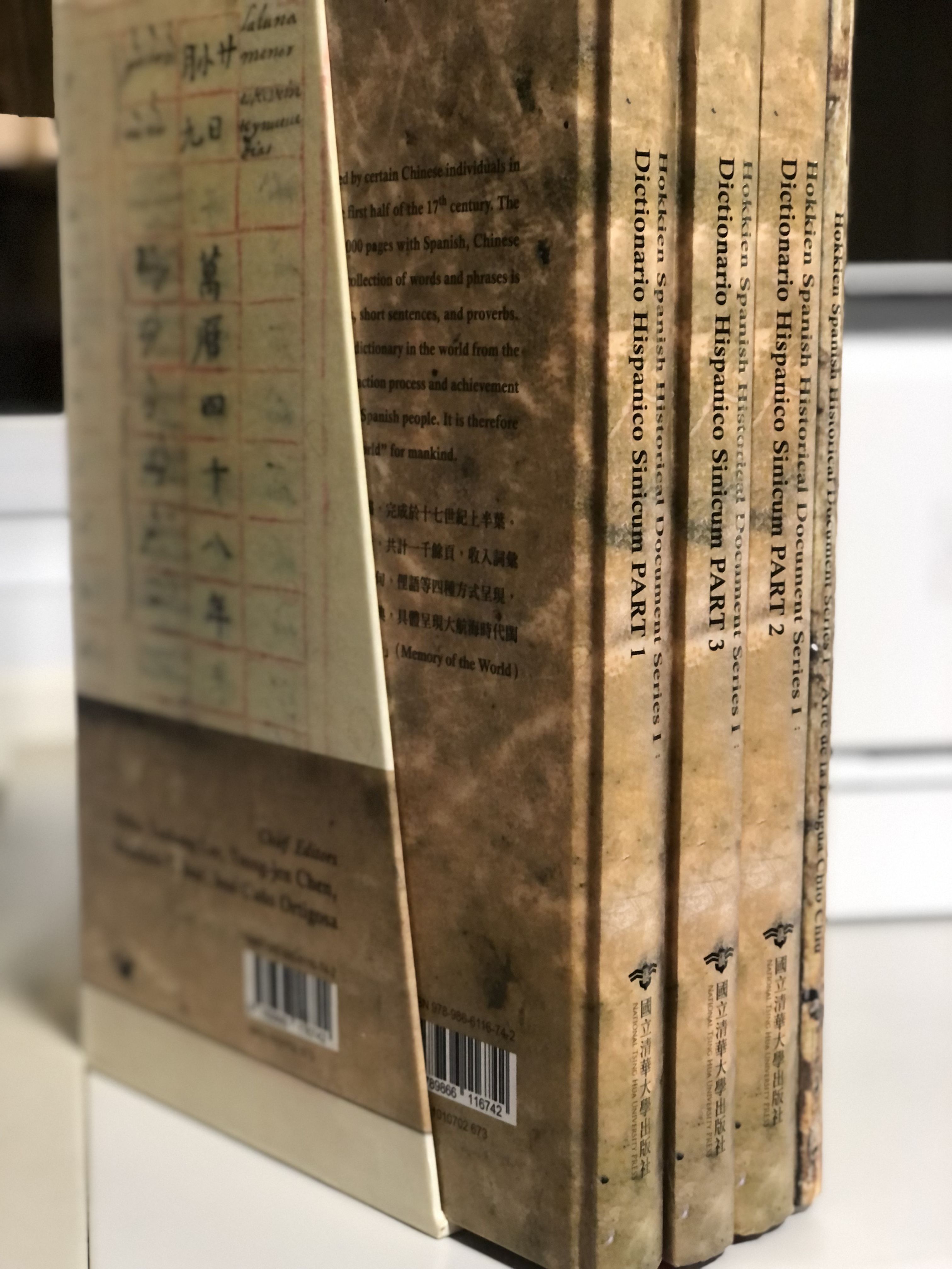 這一系列的歷史文獻和閩南-西班牙文-漢語詞典,迄今共出版九冊手稿摹本:《漳州話語法》、《西班牙-華語辭典》(三冊)、《奧古斯特公爵圖書館菲律賓唐人手稿》 (含《佛郎机化人話簿》)、《明心寶鑑》、《無極天主正教真傳實錄》、《新刊格物窮理便覽》、《華語-西班牙語辭典》。原始文獻或雙語、或三語書寫,而這些文獻分別典藏於菲律賓和歐洲各國圖書館:聖多瑪斯大學圖書館,巴塞隆納大學圖書館、西班牙國家圖書館、德國奧古斯特公爵圖書館、奧地利國家圖書館、羅馬安吉利卡圖書館、荷蘭萊頓大學圖書館。這些殖民時期閩南華人和菲律賓馬尼拉殖民者—西班牙人、宣教士,以及當地居民經商貿易往來學習彼此語言的辭典話簿,展現東西兩造先人學習外語的智慧和毅力。因此,此次研討會也納入團隊成員針對西班牙時期西班牙文與閩南語、漢語,原住民用語的文化融合和交流為主題,讓我們探勘不僅是和平島諸聖教堂的硬體,在軟體(語言文化)上的影響更是根深柢固。耐人尋味的是,殖民時期歐洲強國保留了他們在東亞駐足的文獻瑰寶,而當今時下,這些文獻的相關研究,若沒有我們本地學者的投入鑽研,恐怕無以竟功。