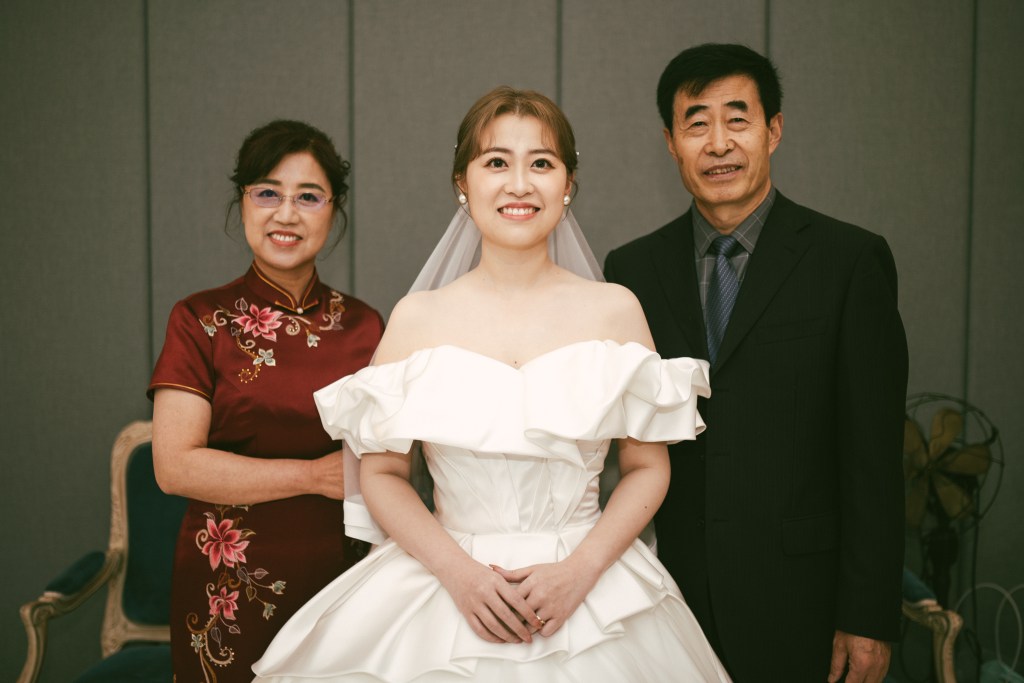 想起這位新娘,在日本和新郎相識,中日語交流,前後五年餘,讀了設計碩士,回眸一笑變成了台灣媳婦。親家公親家母不捨,我說我們跟他們一樣,都有兩個女兒,感同身受,會愛屋及烏。而且,汪家有個孝順的女兒當了人家媳婦,現在變成婆婆(大姑=大姐),鐵定更疼媳婦。眼眶泛著淚光的母女才止住了珠兒滑落。
