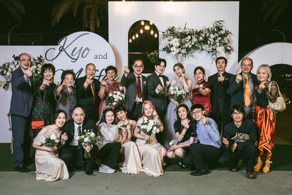 新郎新娘走紅毯:感恩排序第一名,連第三代的婚姻都「操煩」的外公外婆(我的公婆)走前頭,把女兒家的長孫媳照顧的無微不至,連宴席菜單都盯; 沒走紅毯的幕後功臣(我的小叔妯娌)鉅細彌遺,功成不居。第三代一起長大的年輕人,都是隨 call 隨應,男的帥女的靚,不愁伴娘伴郎,感情從搖籃開始好到永遠。