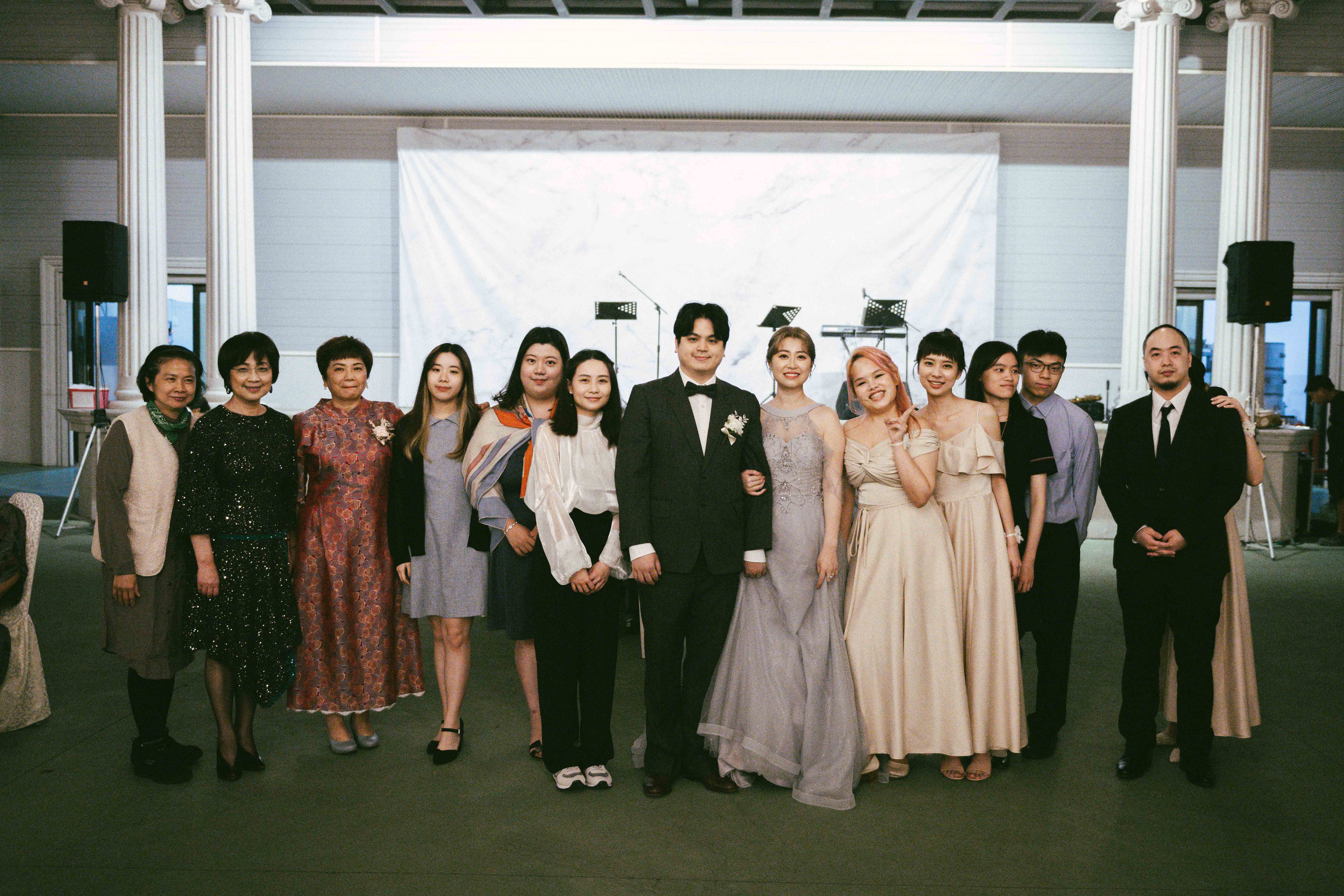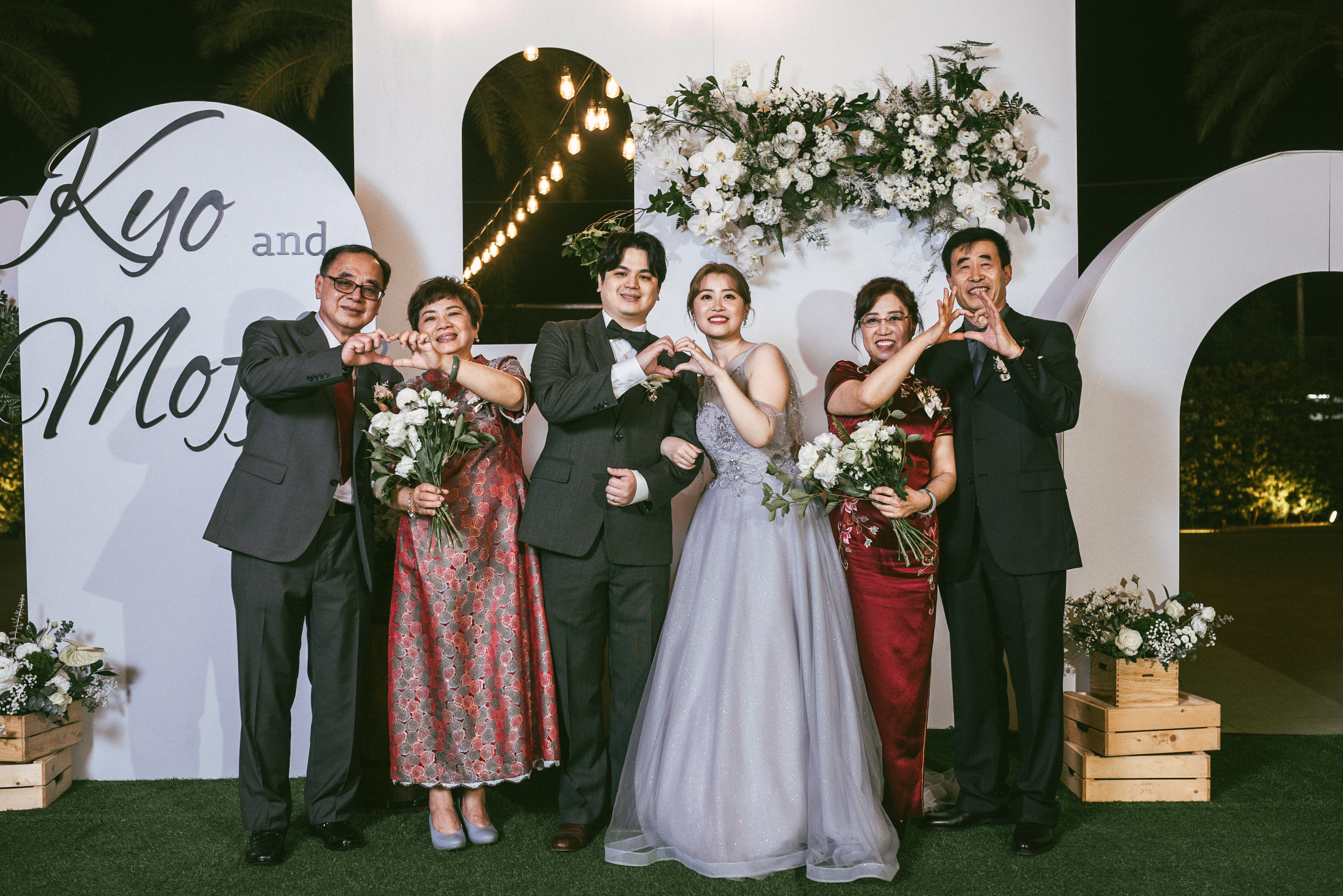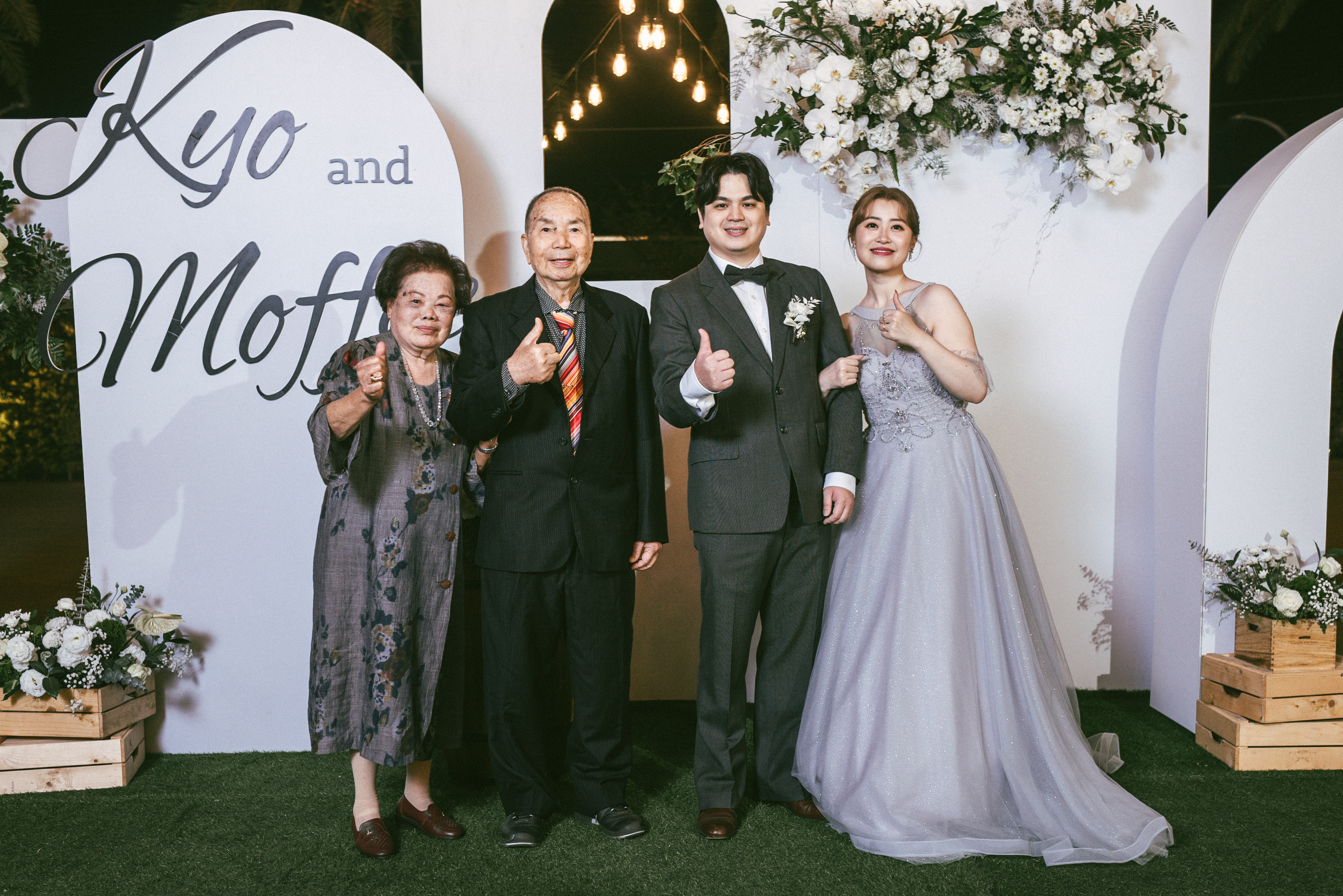 新郎新娘走紅毯:感恩排序第一名,連第三代的婚姻都「操煩」的外公外婆(我的公婆)走前頭,把女兒家的長孫媳照顧的無微不至,連宴席菜單都盯; 沒走紅毯的幕後功臣(我的小叔妯娌)鉅細彌遺,功成不居。第三代一起長大的年輕人,都是隨 call 隨應,男的帥女的靚,不愁伴娘伴郎,感情從搖籃開始好到永遠。