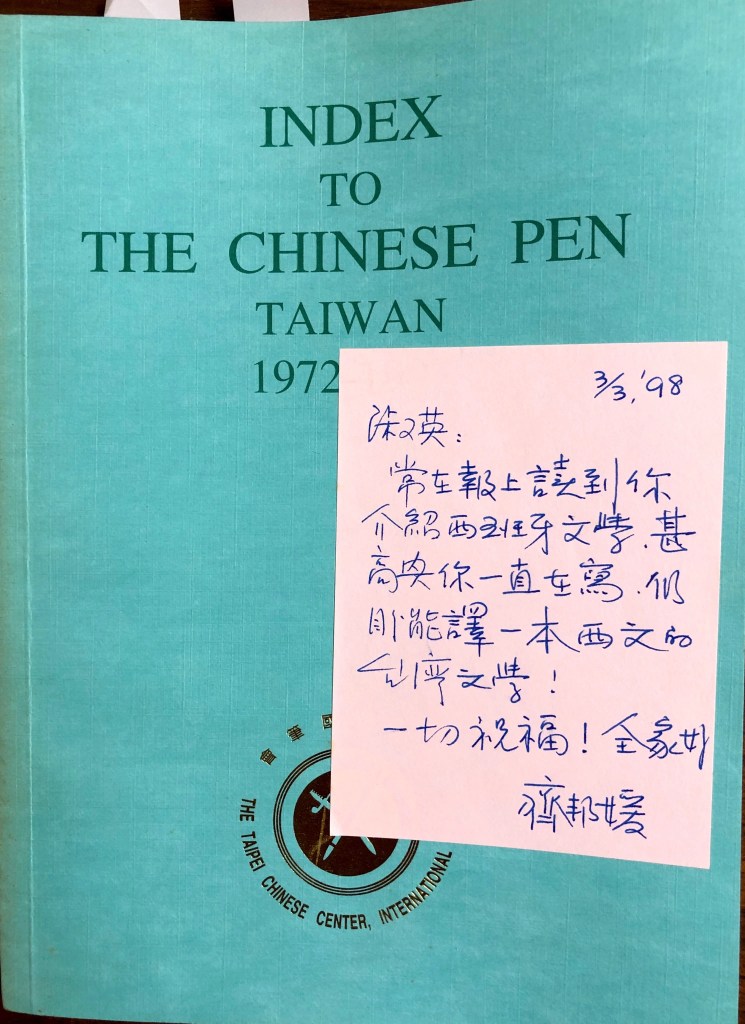 我拿出一九九一年齊教授給我的書信,她是認真、嚴謹的、把翻譯台灣文學當成一生的牽掛和職志,以我們相識 34 年,相信她自然也期待台灣文學有西班牙文譯本。這三十餘年來,我真是辜負她的用心。