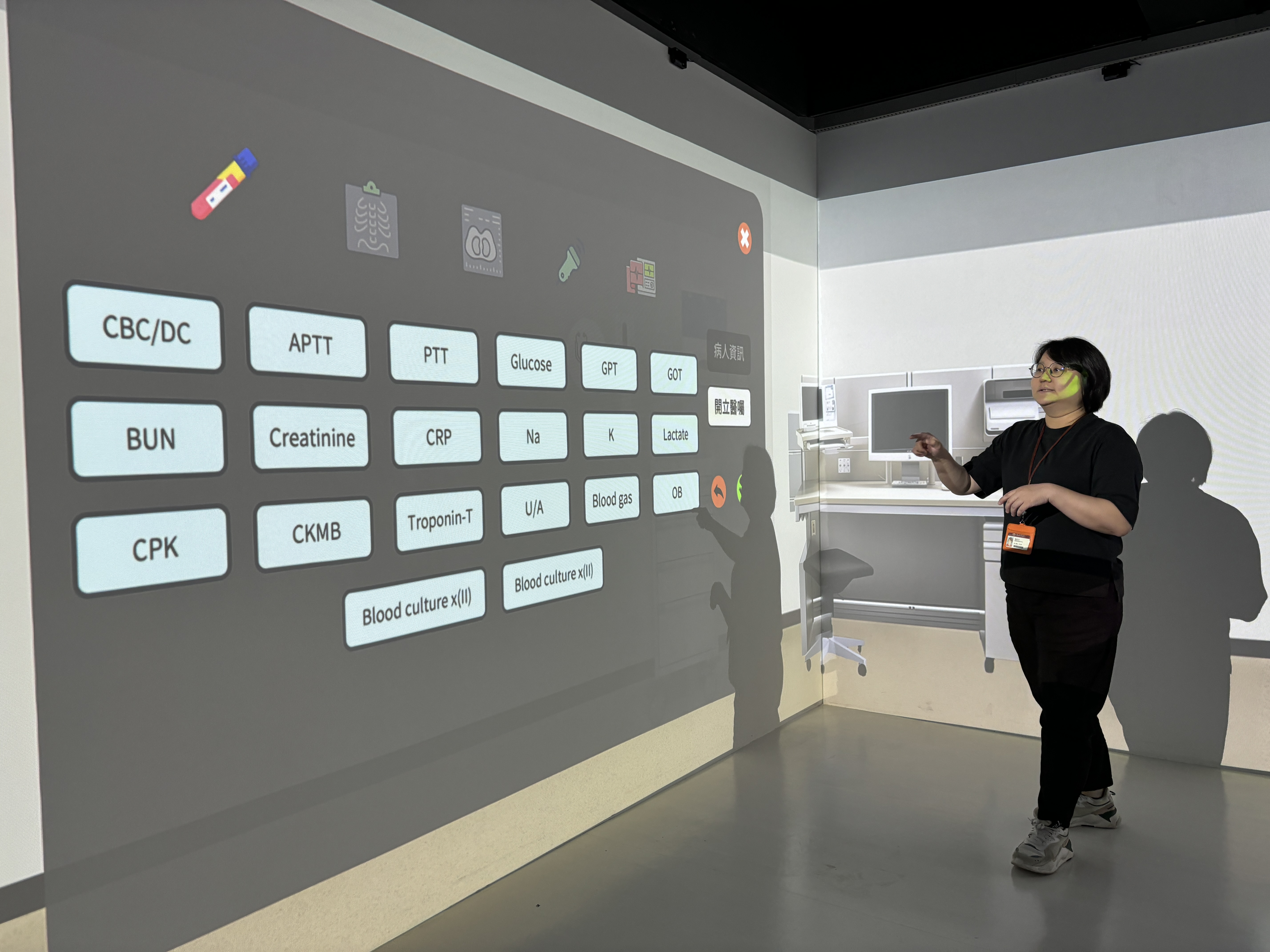離開癌醫後,我們走回百米大道,走到清水模建築的教研大樓,我跟佑謙爸爸說,佑謙在北醫,也會在這些「2」字頭教室上課,幾乎每一間教室都是舒適的沙發椅質地,寬敞又舒適。之後到我很喜歡的醫模中心,它去年年底才開幕,每個隔間色彩亮麗,各種會有真人反應的病人模型,所費不貲,還有三樓所有醫師、護理師國考需跑台的 12 個場地。多謝醫模中心同仁皓羽的講解,我們看了 360 度 VR-AR 的實際操作,手按牆壁的投影,指令一下,景象立即呈現,從救護車到醫院,急救到治療,多希望每個傷患都能獲得治療起死回生!