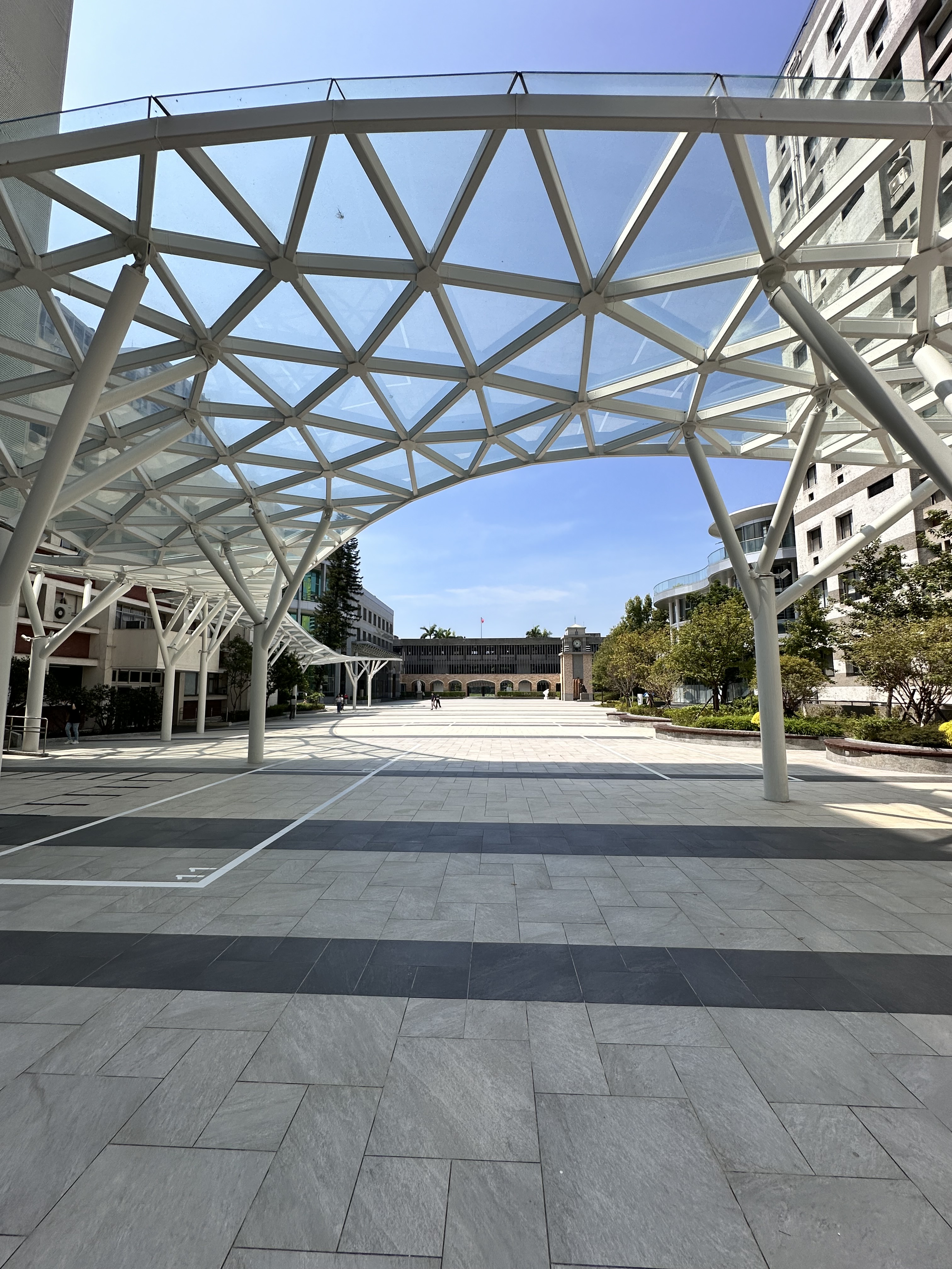 我跟他說去看看所有新生都會參加的迎新活動場地—杏春樓。我們先繞一圈,漫步走過跨領域學院的後院小徑,再從跨領域學院一樓走樓梯到三、四樓的杏春樓。本來要帶佑謙爸爸搭電梯,不知怎地,電梯就是不見了,東望西望,叫我好生懷疑,有活動時十分順路地就搭電梯上去,怎地今天遍尋不著? (隔天問了佳琪院長,才知道平時室內電梯沒開放,看也看不到,真是神奇的設計)。