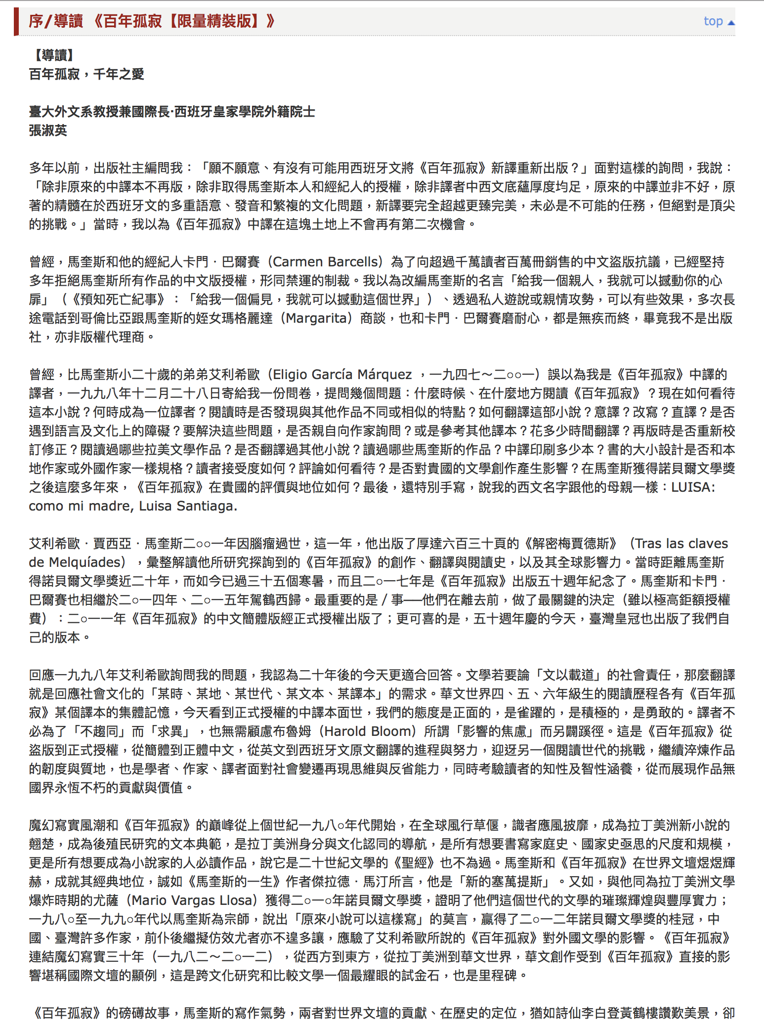 導讀:百年孤寂,千年之愛