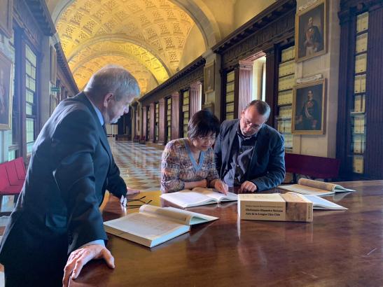 檔案總館館長 M. Ravina 與本辭典研究員 José L. Caño Ortigosa