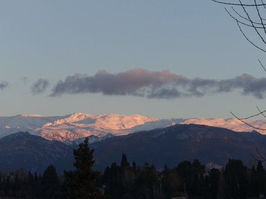 夕陽映照白雪皚皚的雪山; Mirador de San Nicolás 遠跳 Sierra Nevada