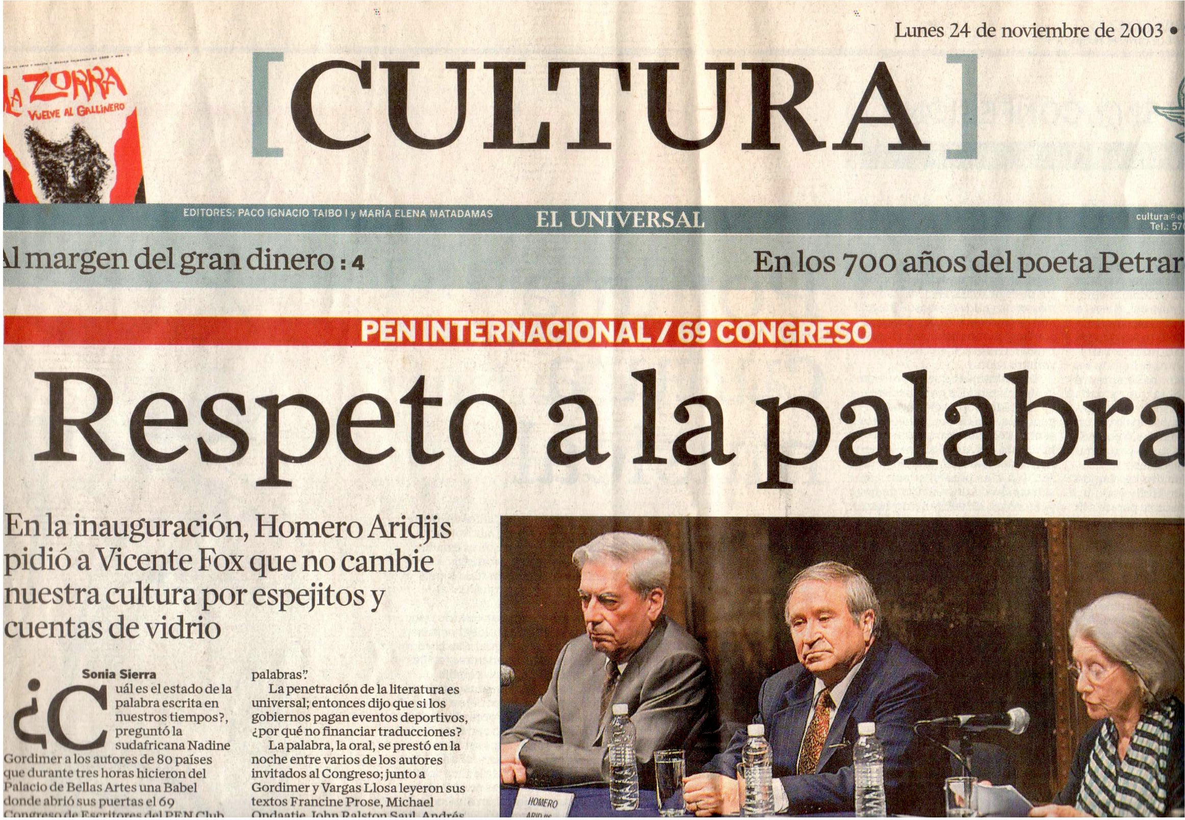 「尊敬文字」:《環球報》(El Universal) 報導 (左一尤薩,右一 葛蒂瑪)