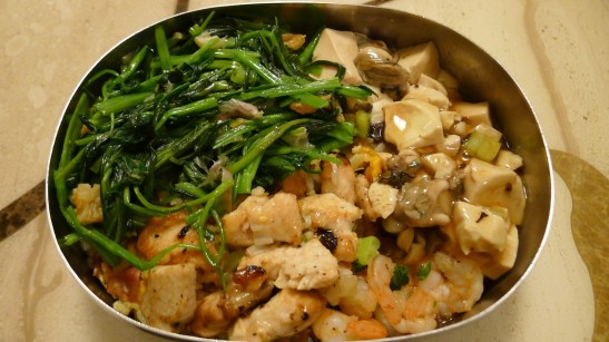 白飯+豆豉豆腐蚵+醬爆蝦仁+宮保雞丁+空心菜