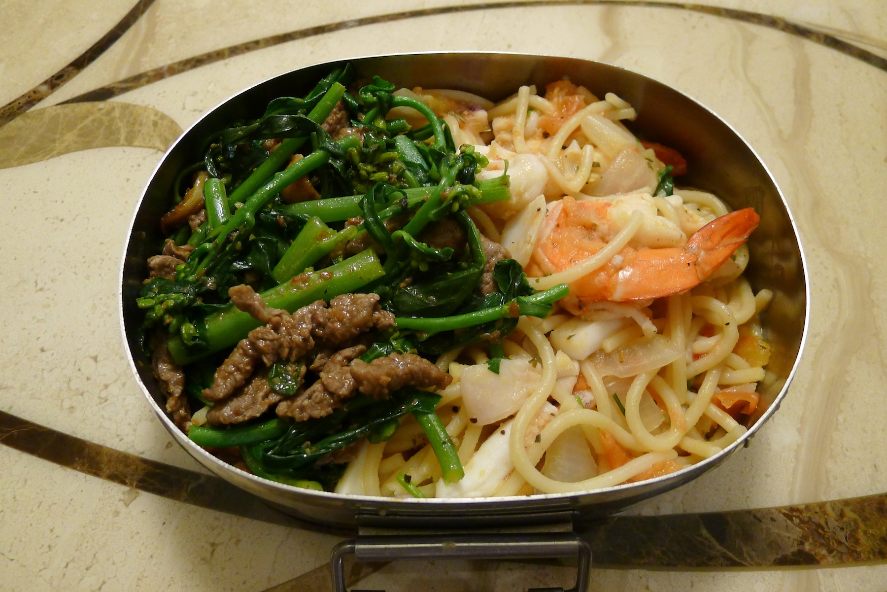 中式炒麵 (青蔥+鮮蝦)芥蘭沙茶牛肉 (配菜)