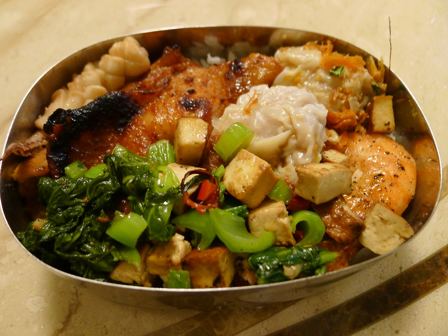 白飯+雪菜豆干+乾煎鮮蝦+紅油抄手+燴墨魚