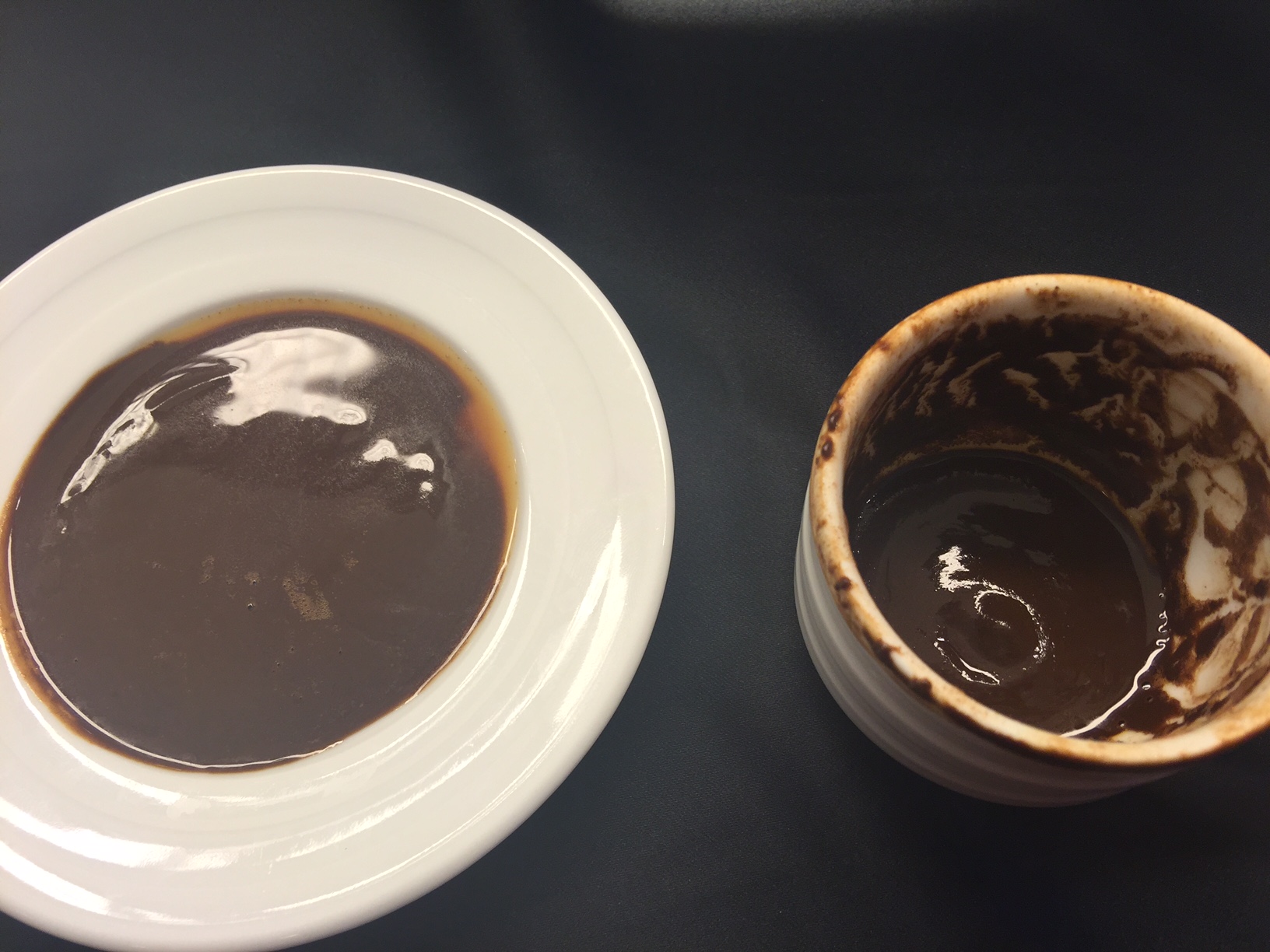 土耳其咖啡,喝完翻轉倒出咖啡渣,以方向決定迴向好運給對方或給自己