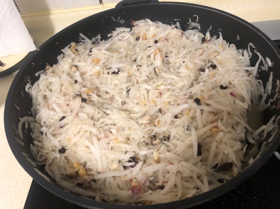 拌入蘿蔔絲(若太乾,加水 100 克)