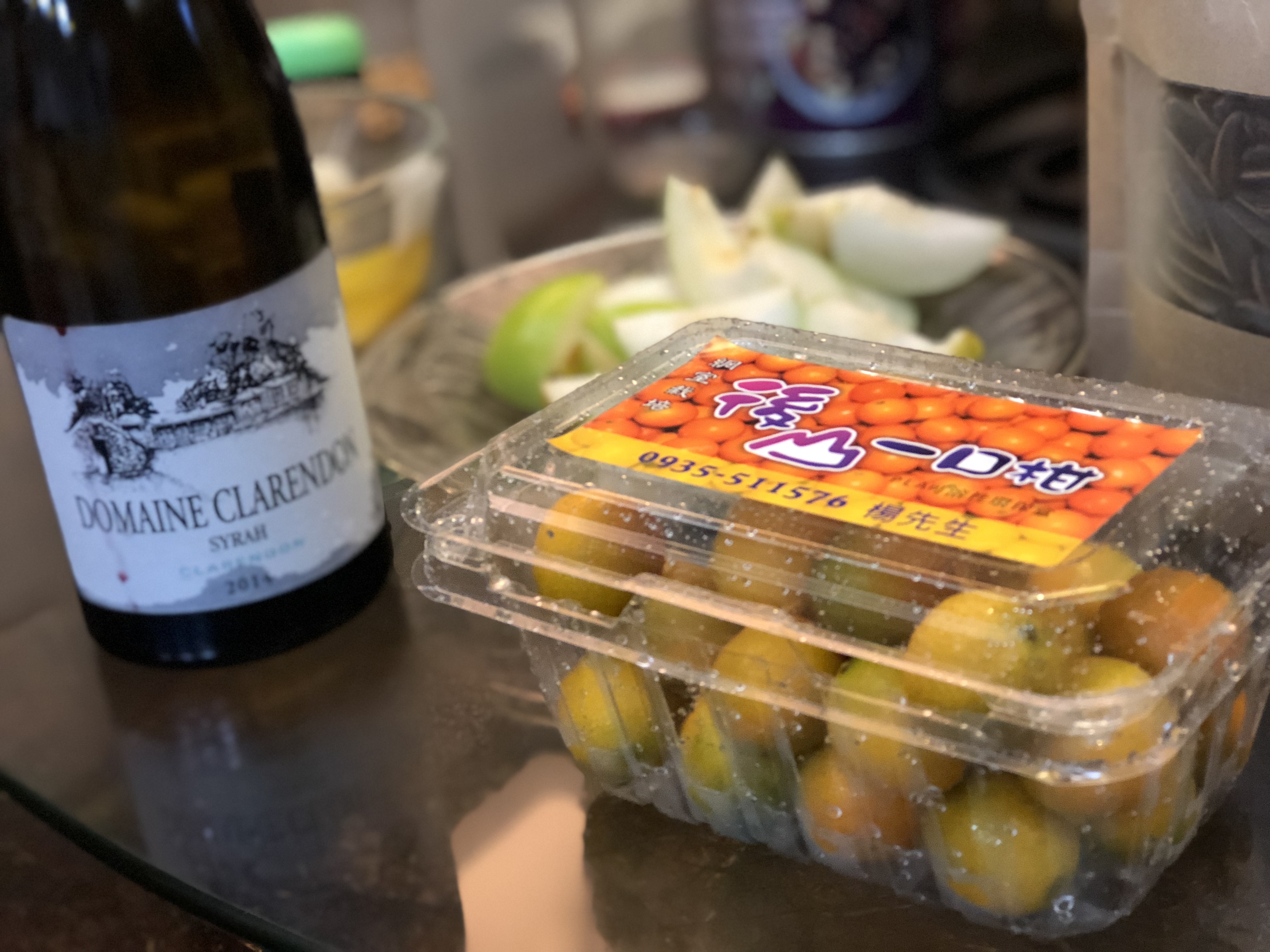 闔家歡,每天品嚐不同紅酒長知識; 學生贈送的台東楊家一口柑,帶回台南分享。