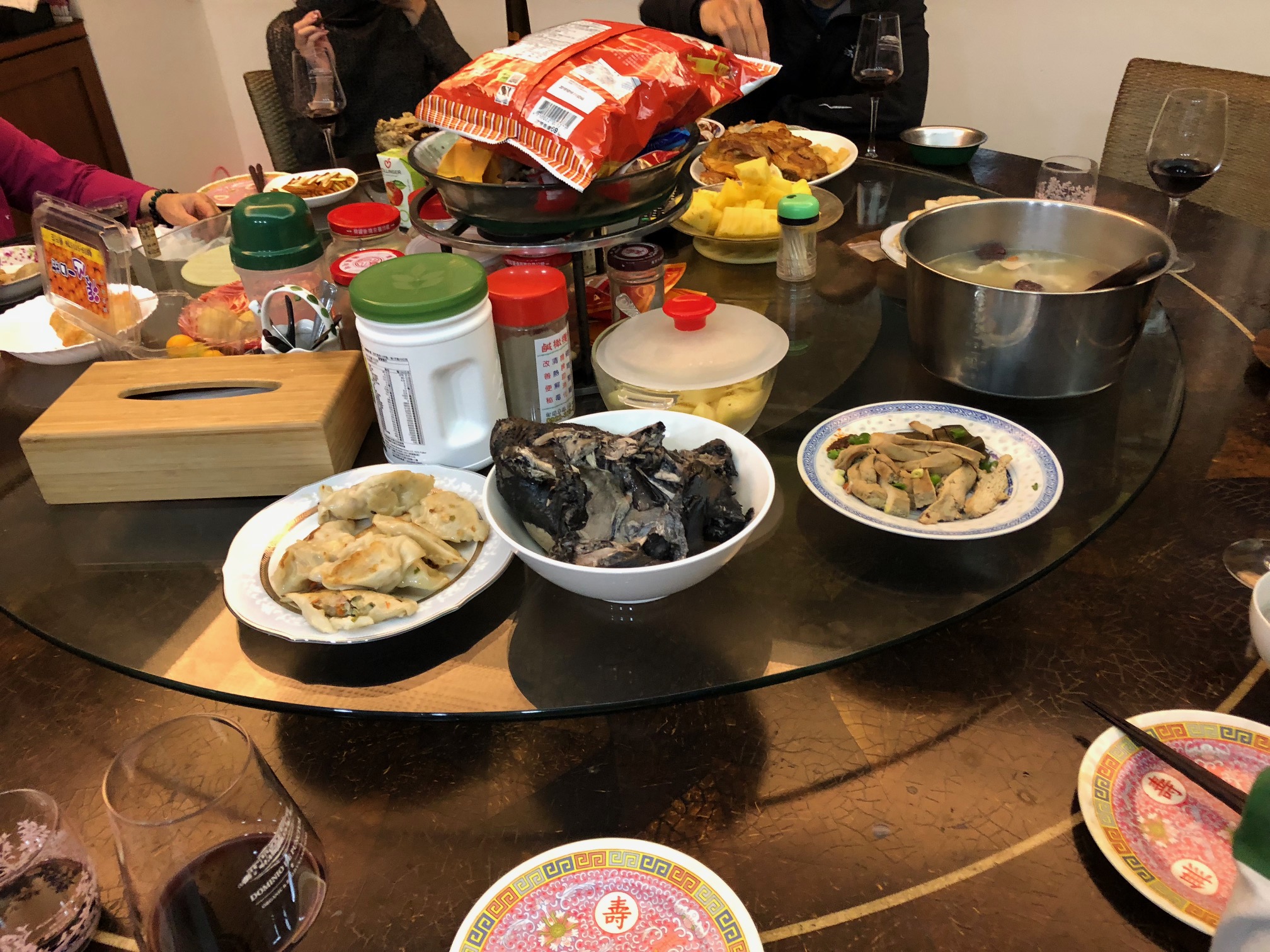 廚房大圓桌什麼都有,亂中有序