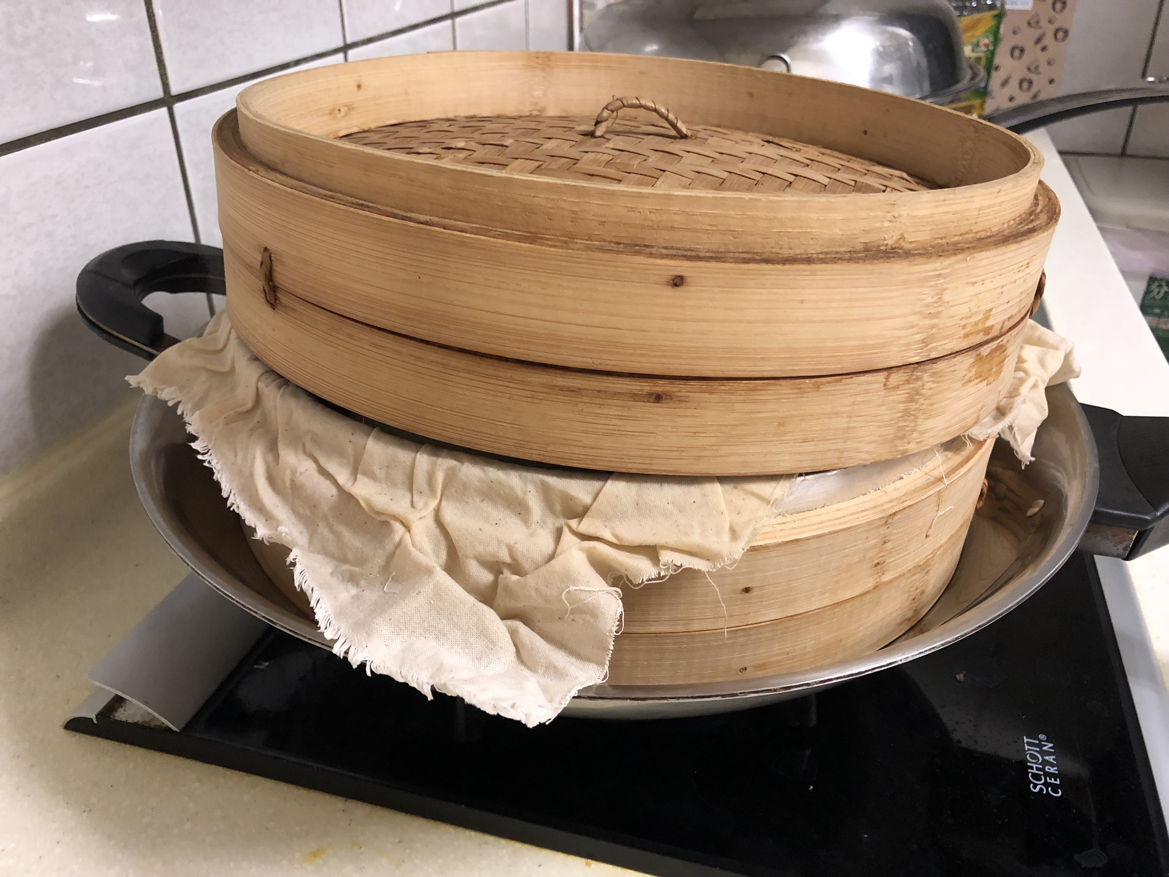 蒸完後掀開細縫,裡外熱冷空氣協調一下