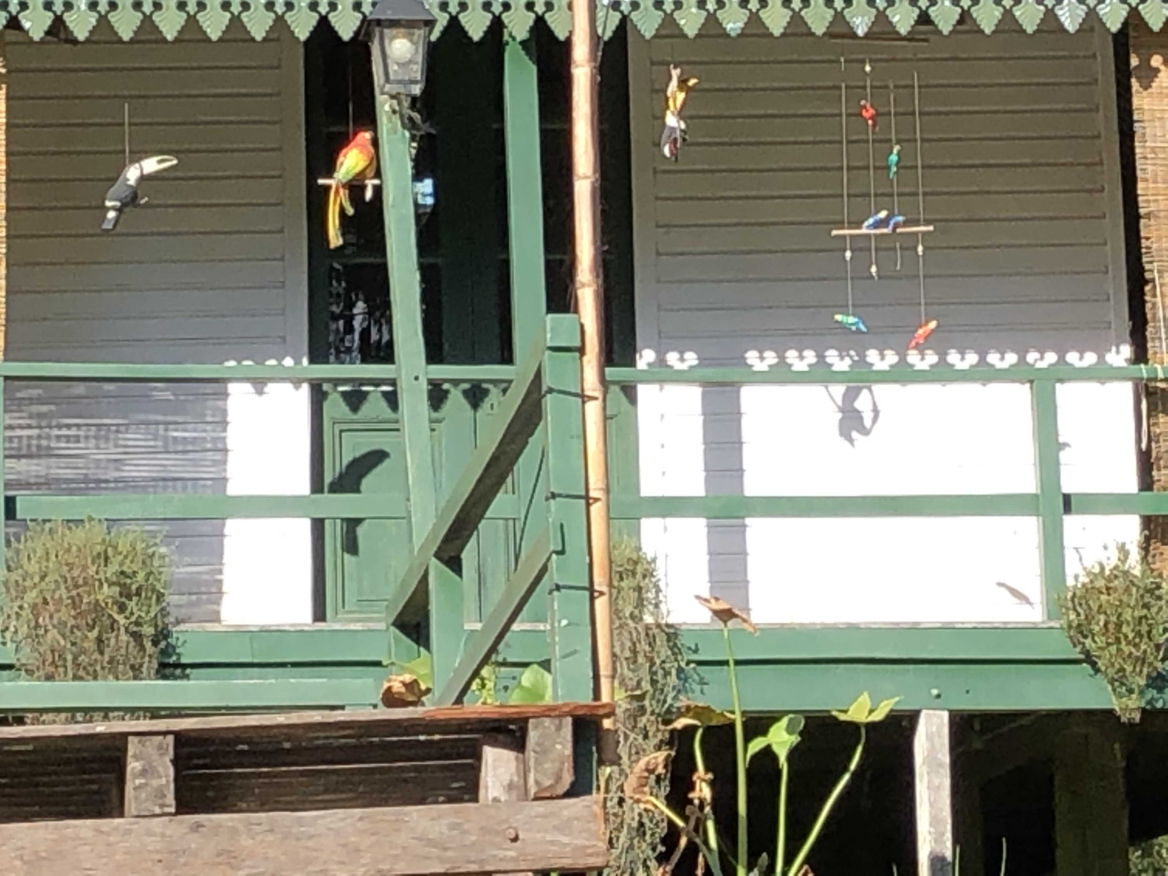三角河灘沿途的泛舟驛站,鸚鵡觀賞遊客