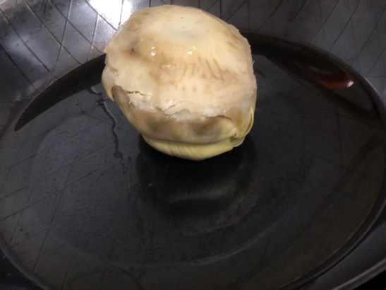 整顆乾煎,所有蓮花瓣邊緣都會呈金黃或褐色,彷彿畫唇線