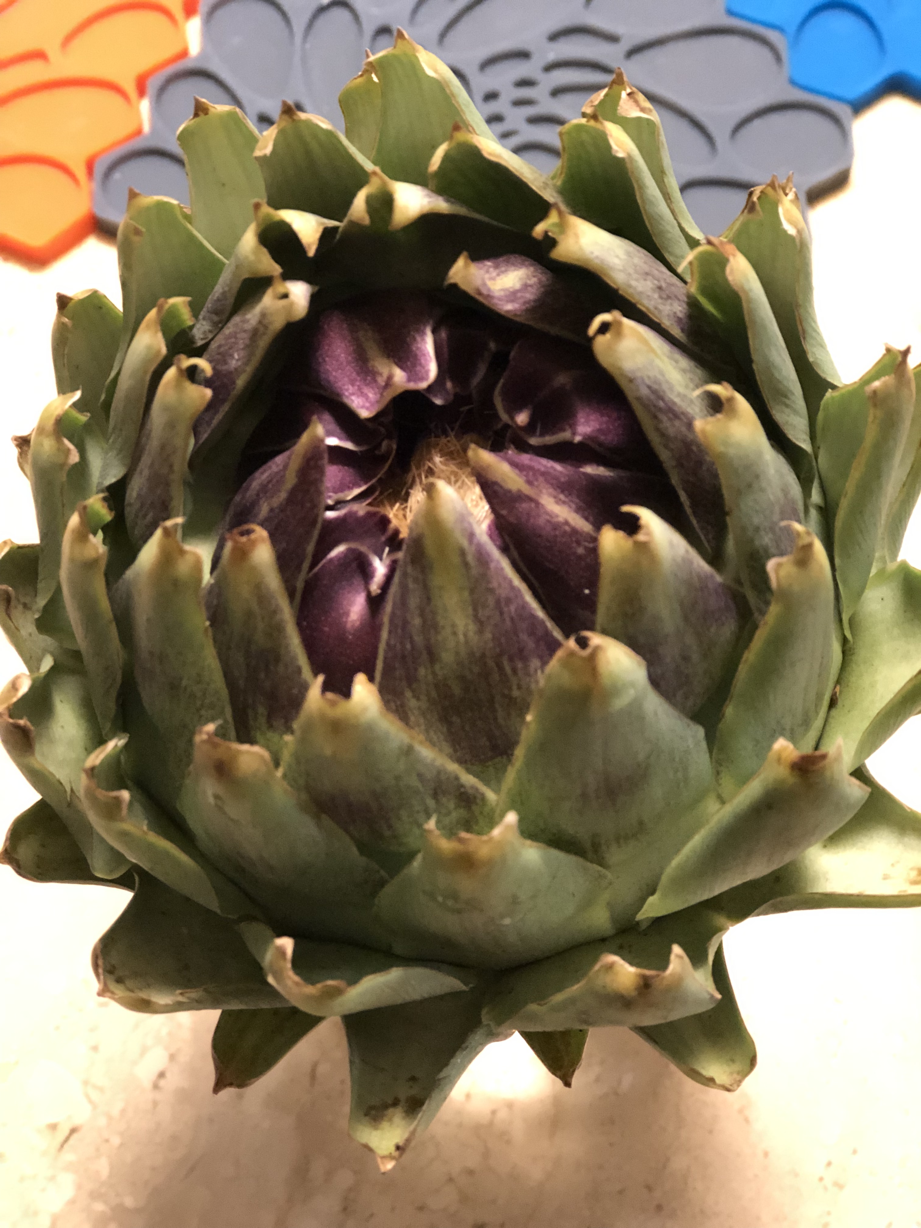 剛摘拾時綠紫鮮豔的朝鮮薊