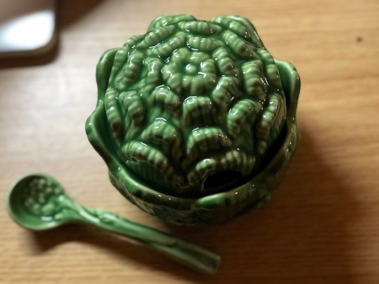 朝鮮薊花苞狀調味罐,連湯匙都有薊痕