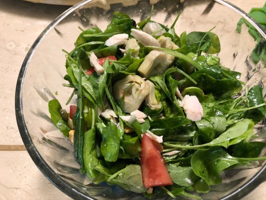 嫩芝麻葉,番茄和朝鮮薊沙拉。