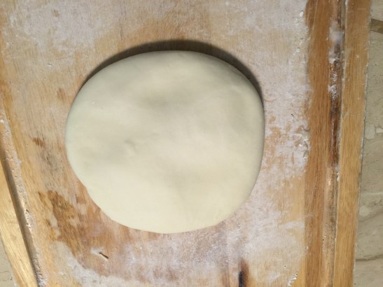 麵糰整形製作麵條,先壓扁。