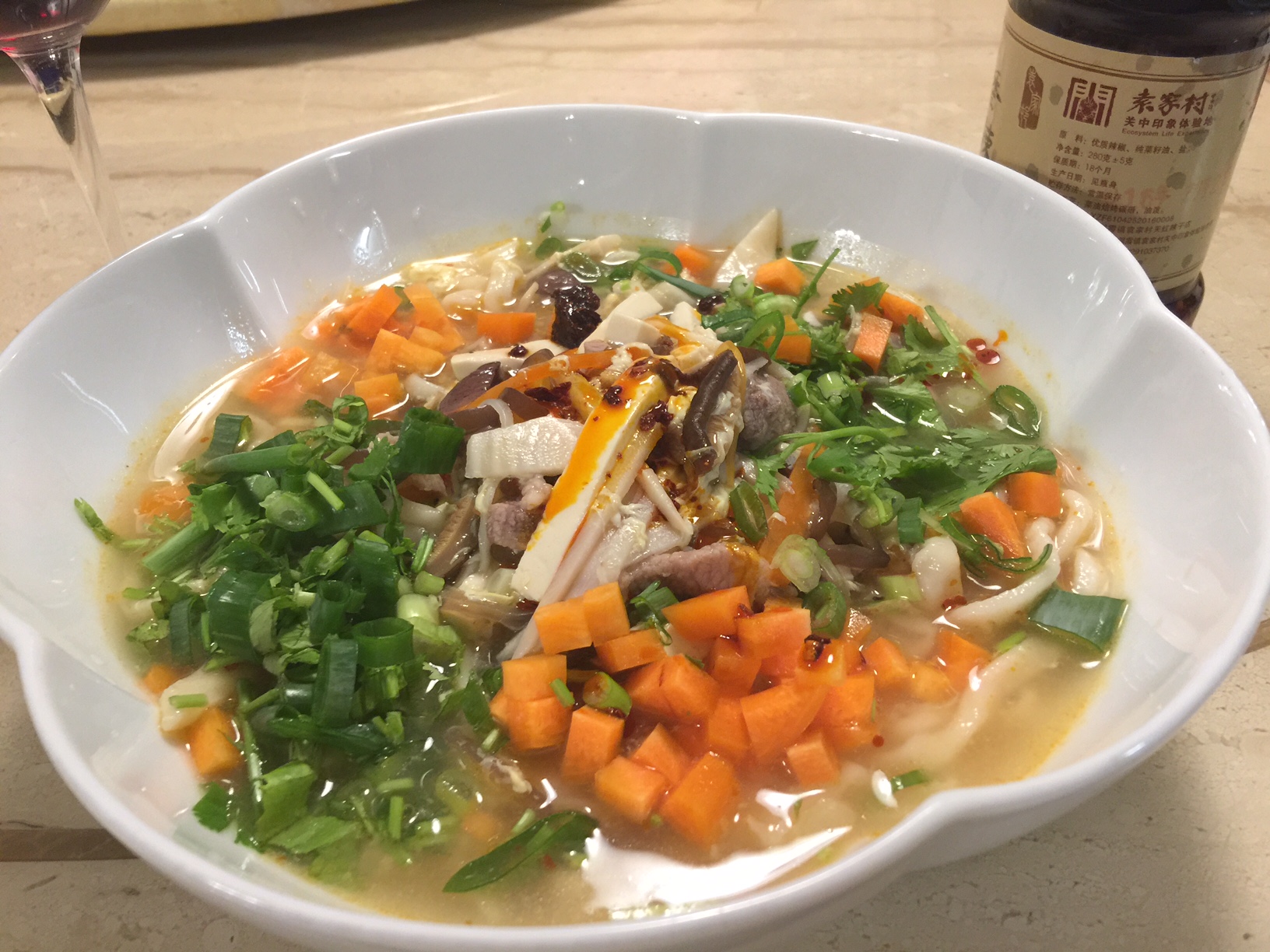 未攪拌前的酸辣+西安麵