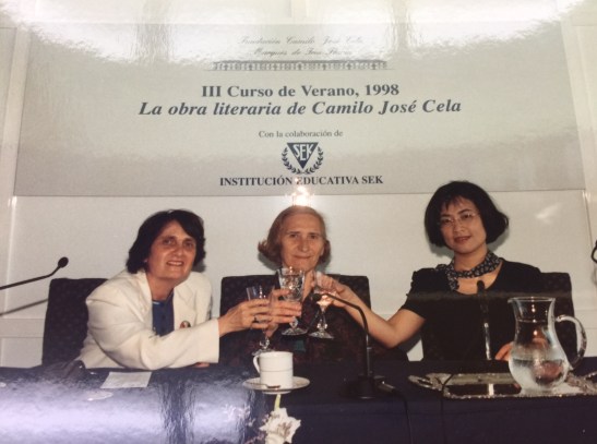 1998 年 7 月 18 日塞拉基金會閉幕,與其他講者合影(中間這位羅馬尼亞學者說我有「大象的記憶力」(Memoria de elefante))