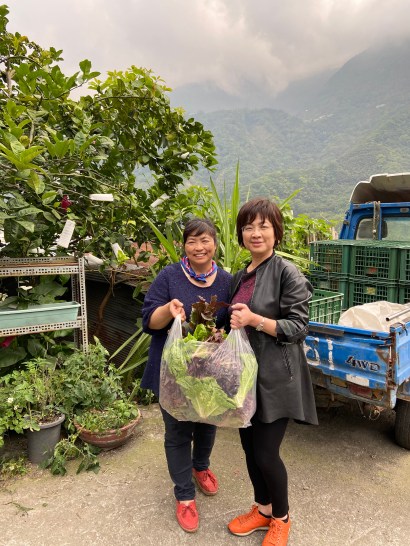 看我提這大包蘿蔓生菜,連臉都要用力才提得起