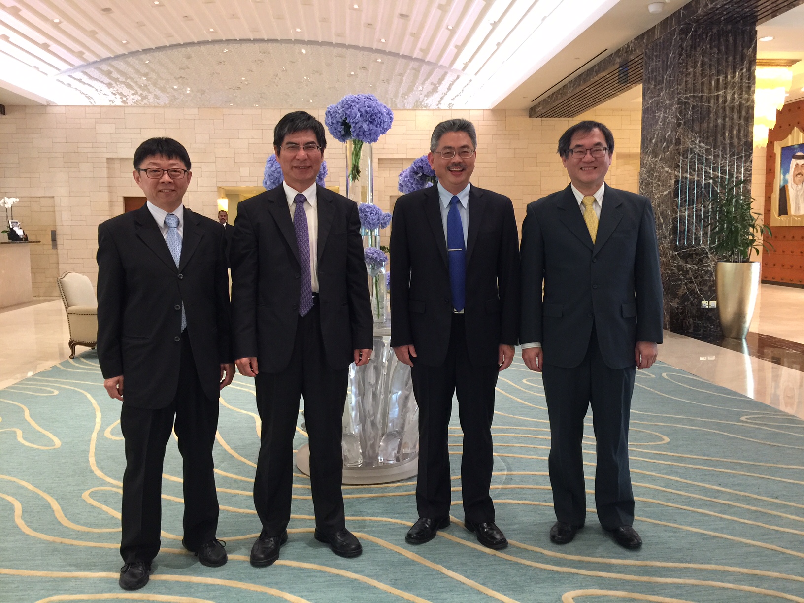 OIA 領帶四人組訪科威特 K 4: (左至右)顏家鈺院長、陳政次良基 (學術副校長)、陳為堅院長、陳信希副院長