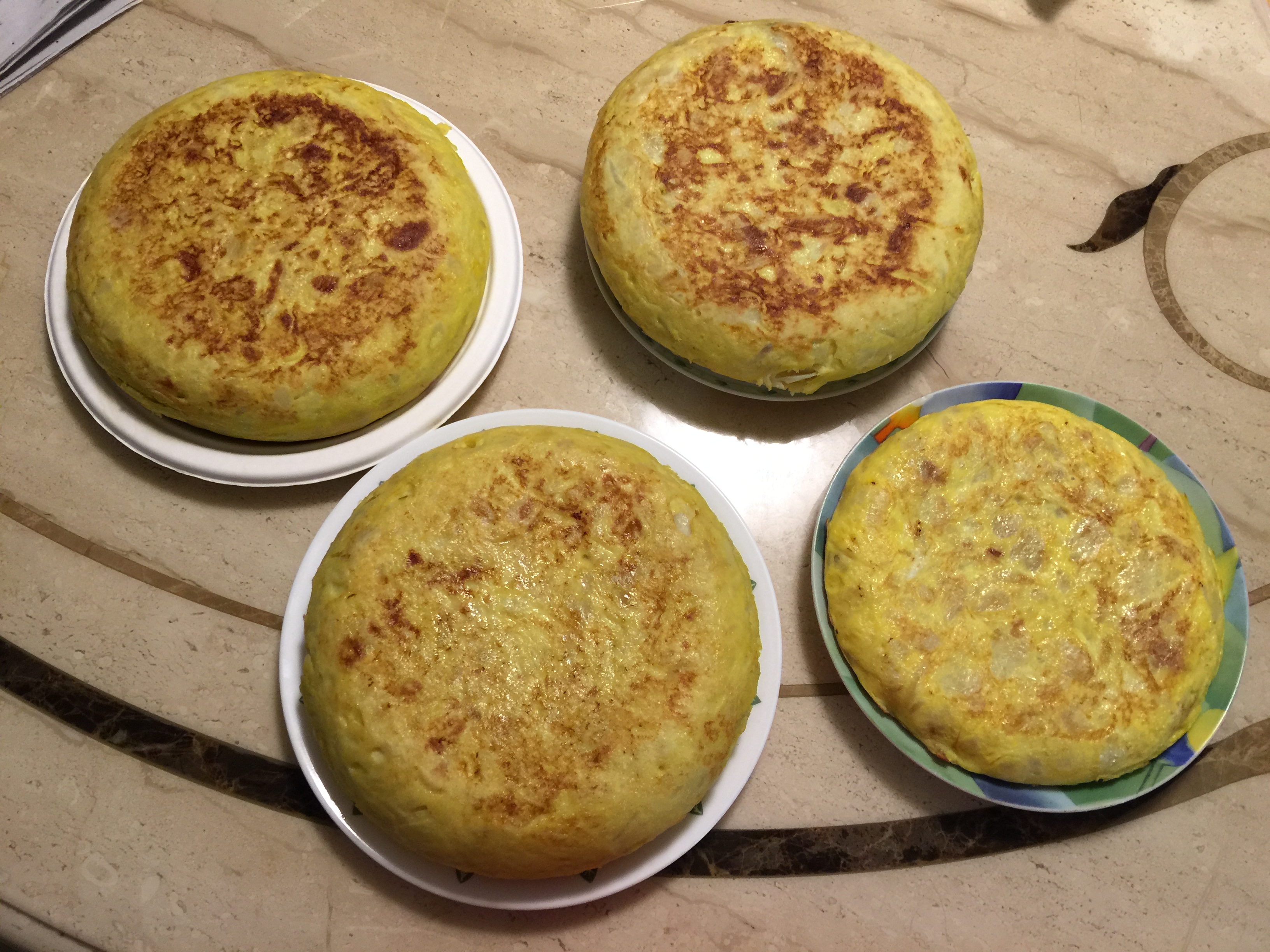 第三次做的友誼的馬鈴薯蛋餅。右下角是剩餘佐料做成的較薄的馬鈴薯蛋餅